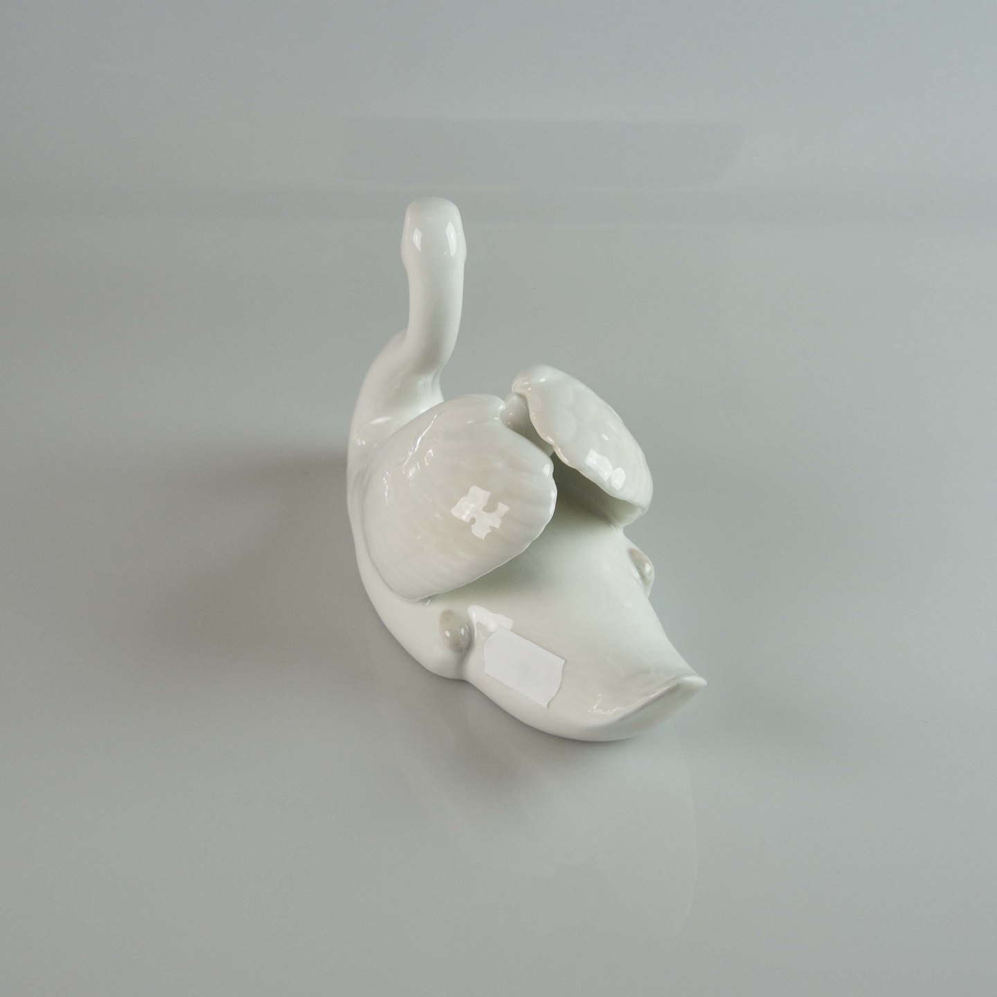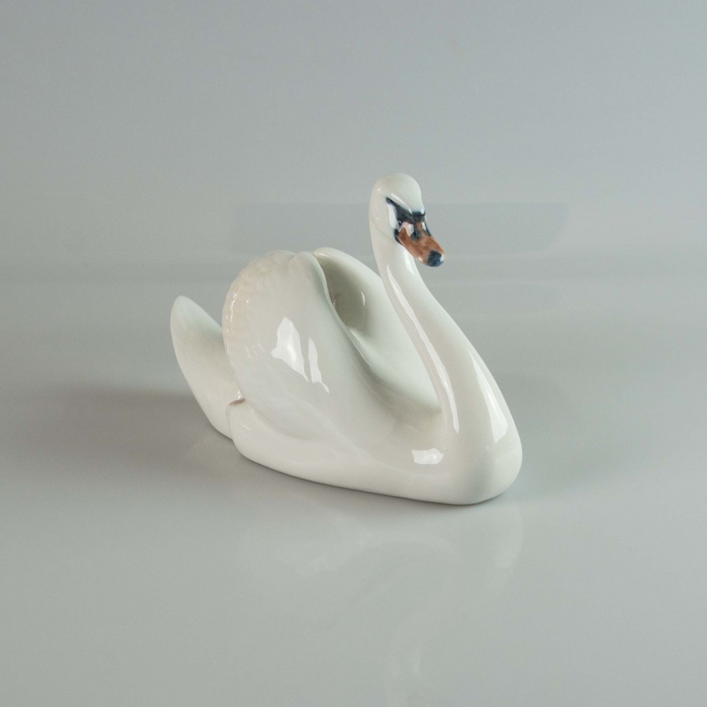 Figur i porcelæn med motiv af svømmende hvid svane nr. 073