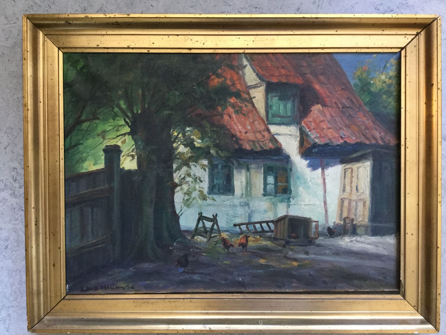 Maleri af Lars Kliim - Gårdeksteriør 1935.