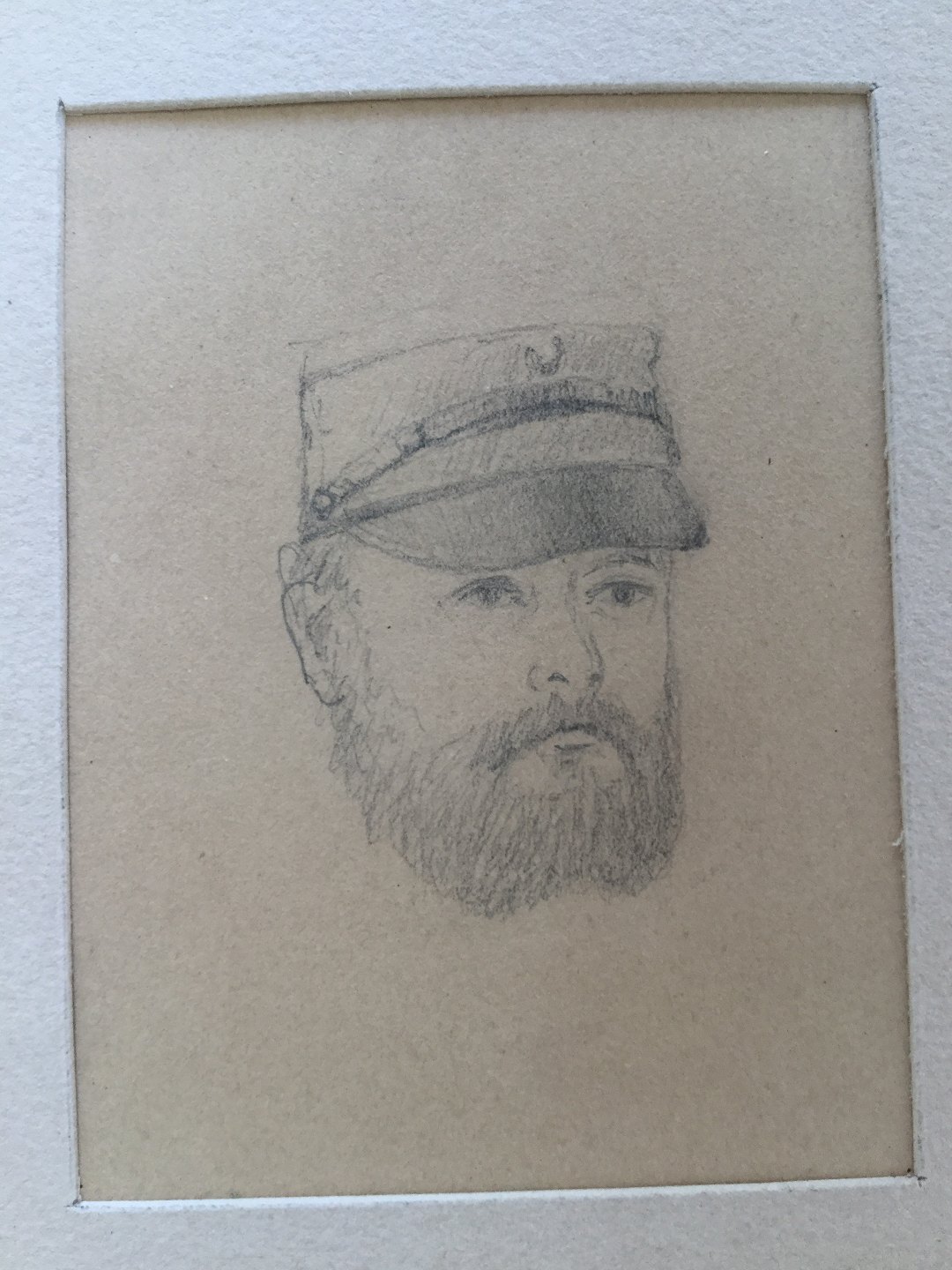 Portrætter og helfigur af soldaterkammerater fra krigen i 1864 samt et studie af kvindehænder.