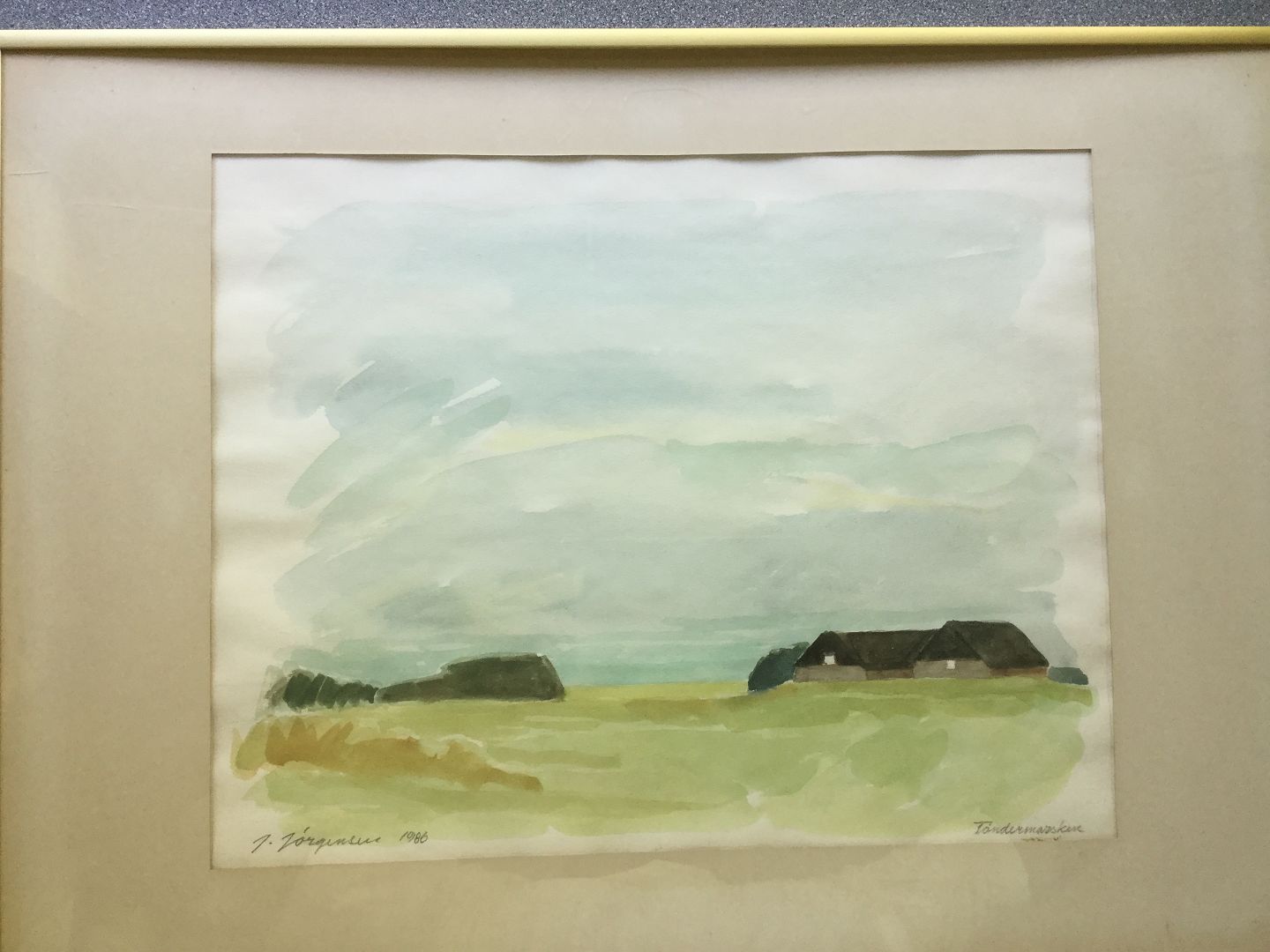 Akvarel af Jørgen Jørgensen - Parti fra Tøndermarsken 1986.