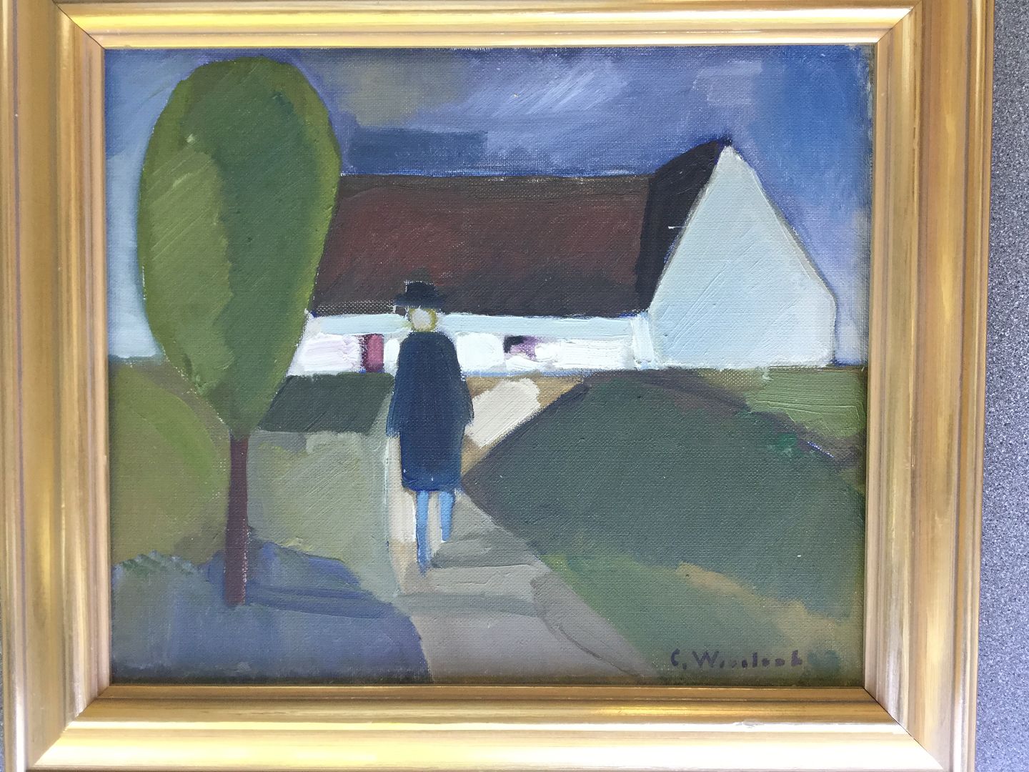 Maleri - Person ved gård.
