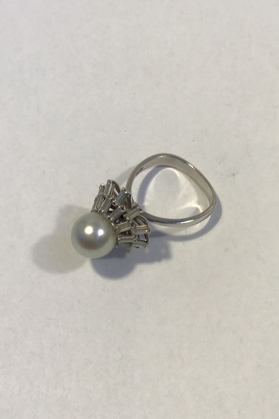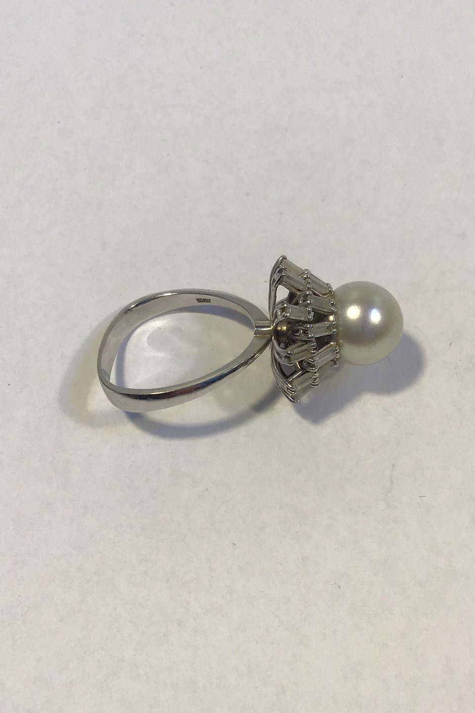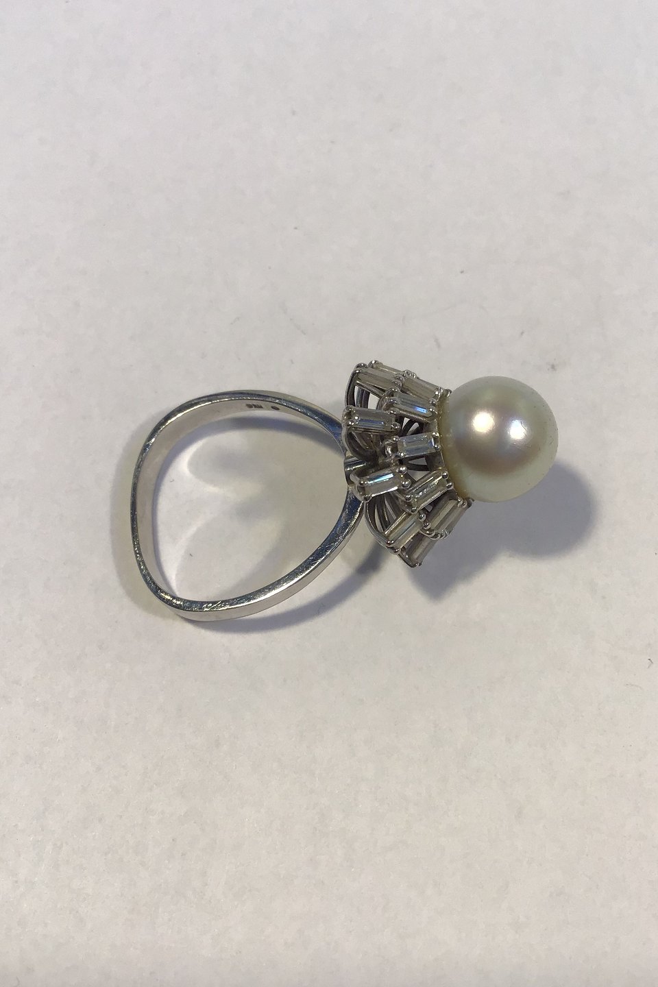 Georg Jensen & Wendel 18 K Hvidguld Ring med Perle og Diamanter Ring Str 59 Vægt 8.5 gr 1,4 ct diamanter