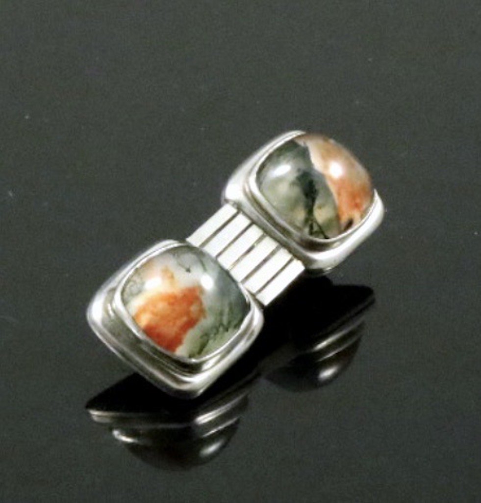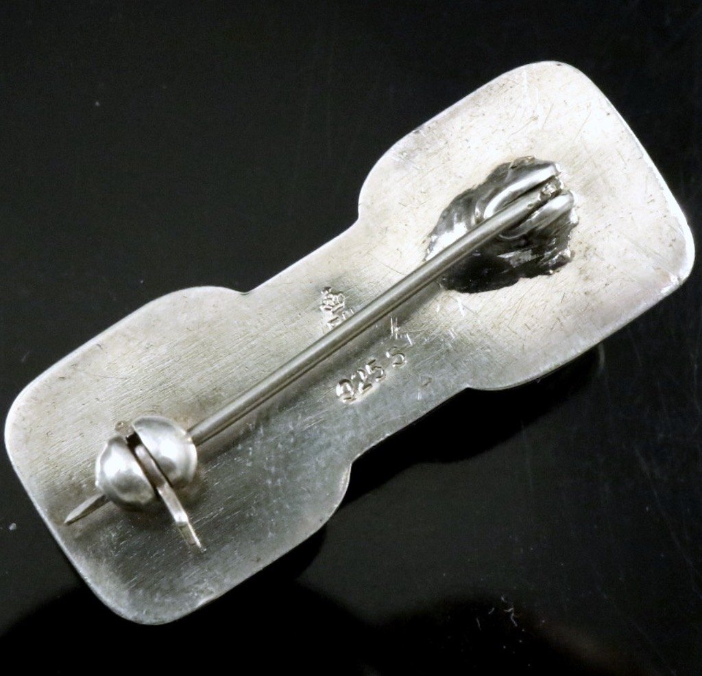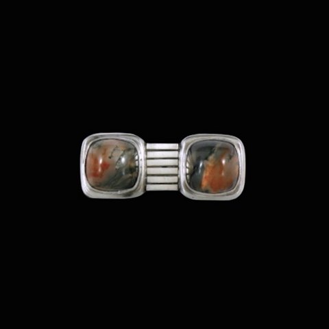 Svend Weihrauch - F. Hingelberg. Art deco broche i sterling sølv med mosagat.