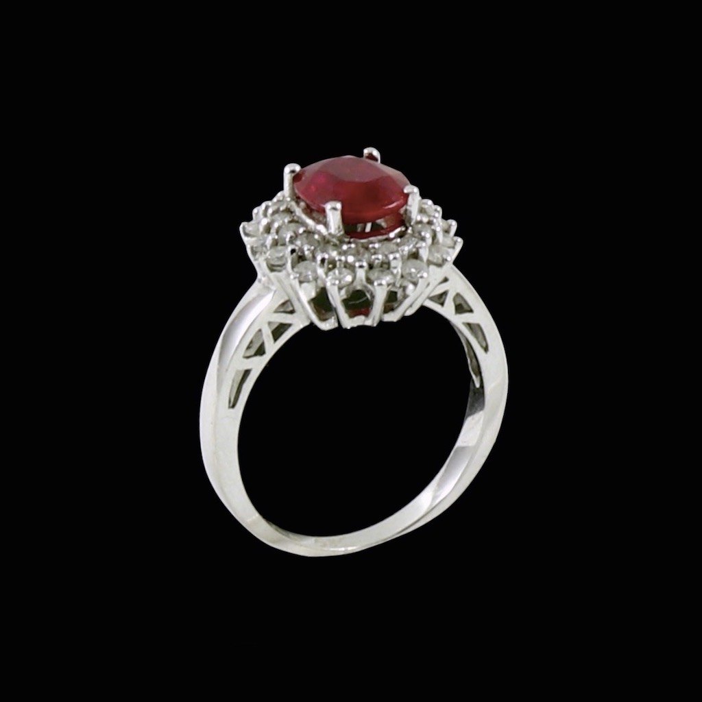Cocktailring i 14k hvidguld med Rubin og diamanter. |