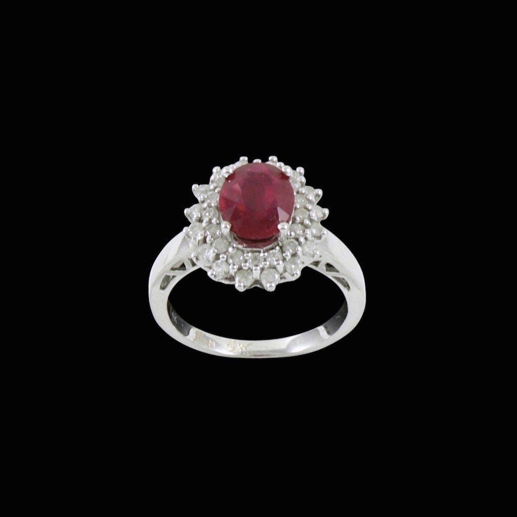 Cocktailring i 14k hvidguld med Rubin og diamanter.