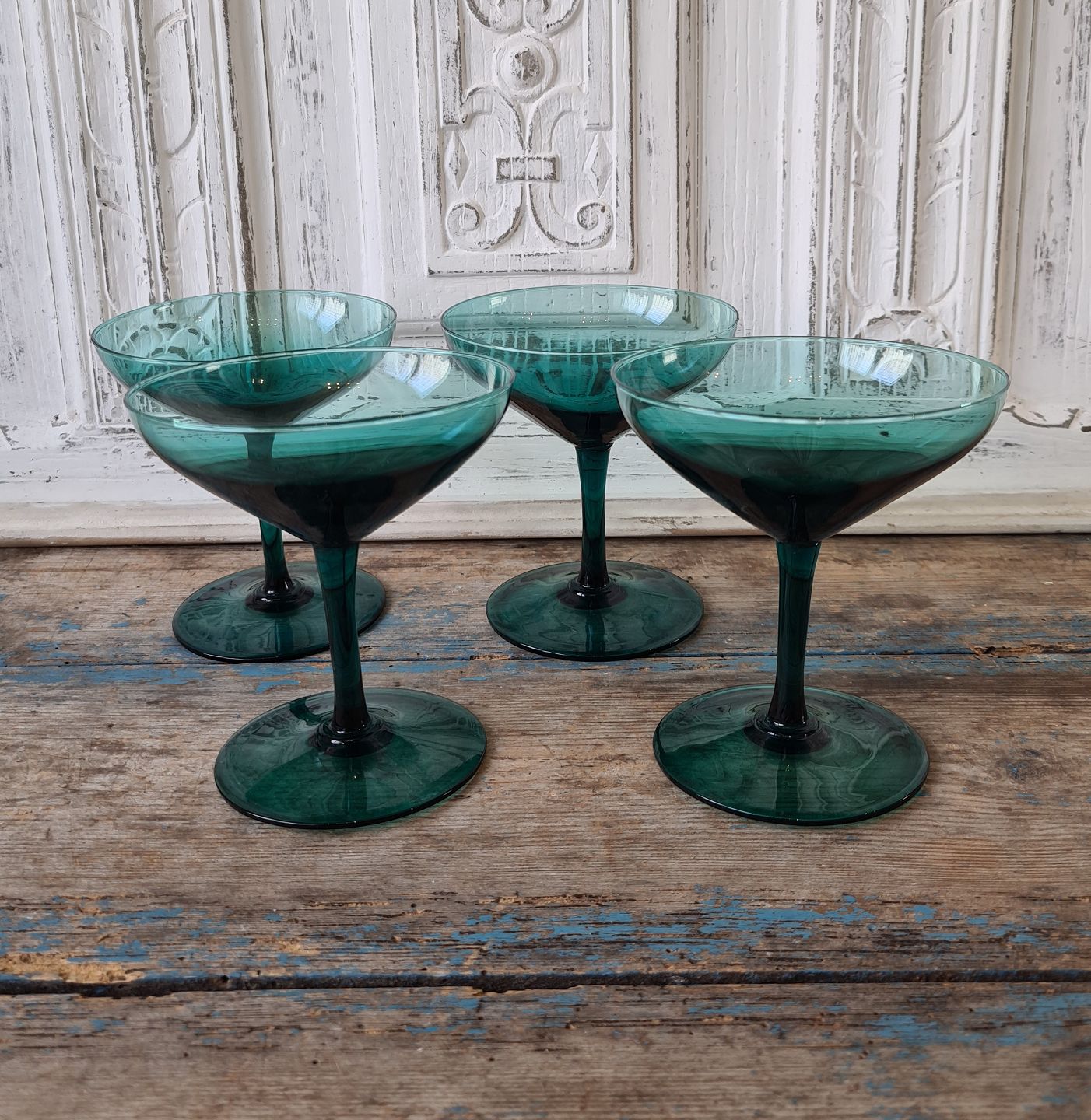 Sæt på fire smukke grønne cocktail glas.