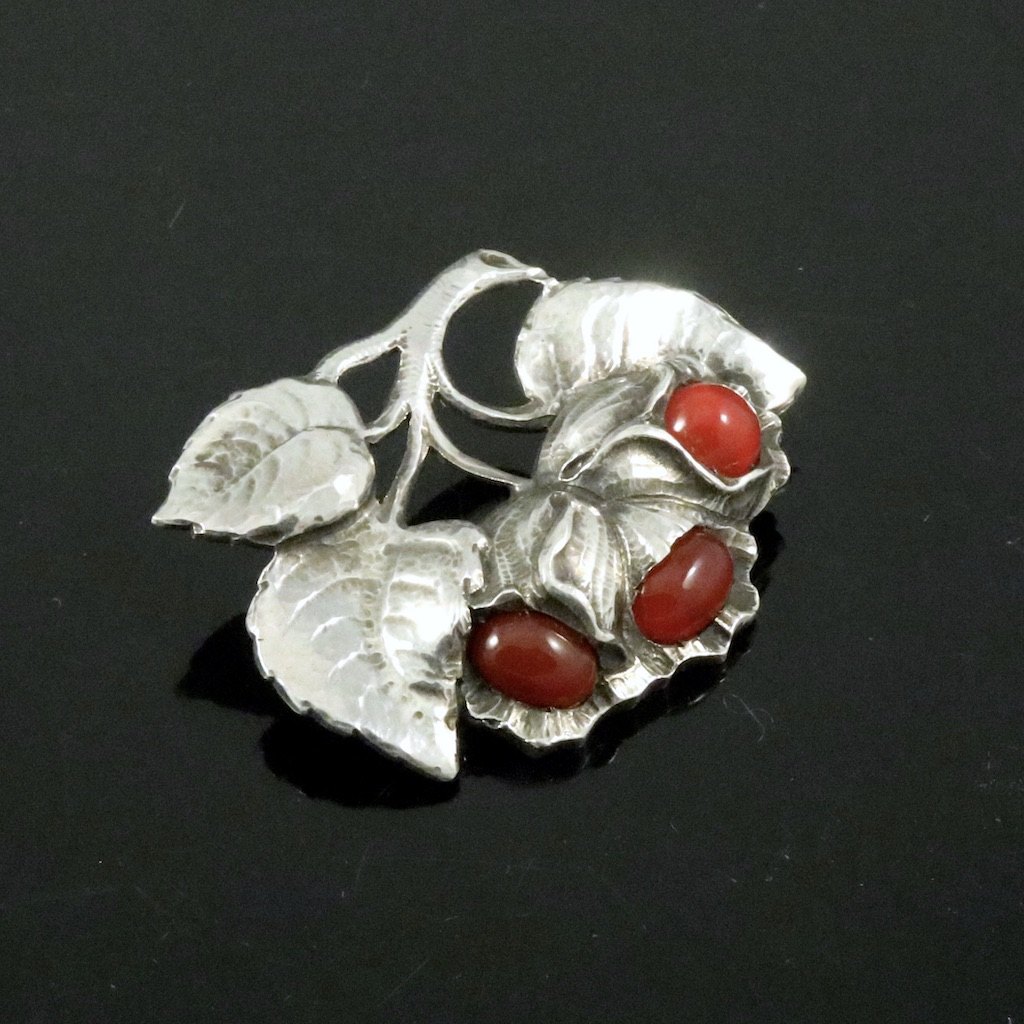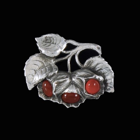 H.N. Hviid & Co. Skønvirke Broche i Sølv med karneol.