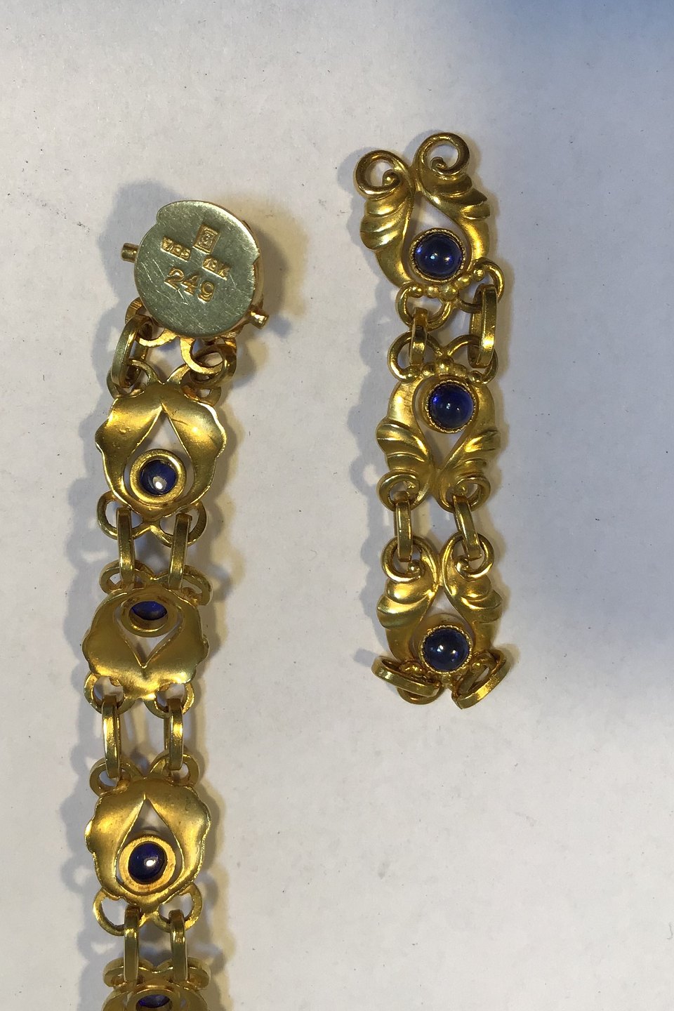 Georg Jensen 18K Gold Necklace with Saphires No 249 Measures 37,5 cm(14 49/64 in) Weight combined 33.6 gr/1.08 oz (Necklace comes with 4 cm(1 37/64 in) "extra links")