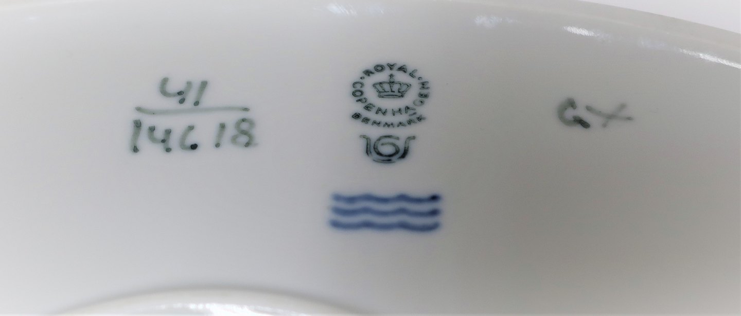Royal Copenhagen. Gemina. Design Gertrud Vasegaard. Serveringsfad. Model 14618. Længde 28 cm. (1 sortering).