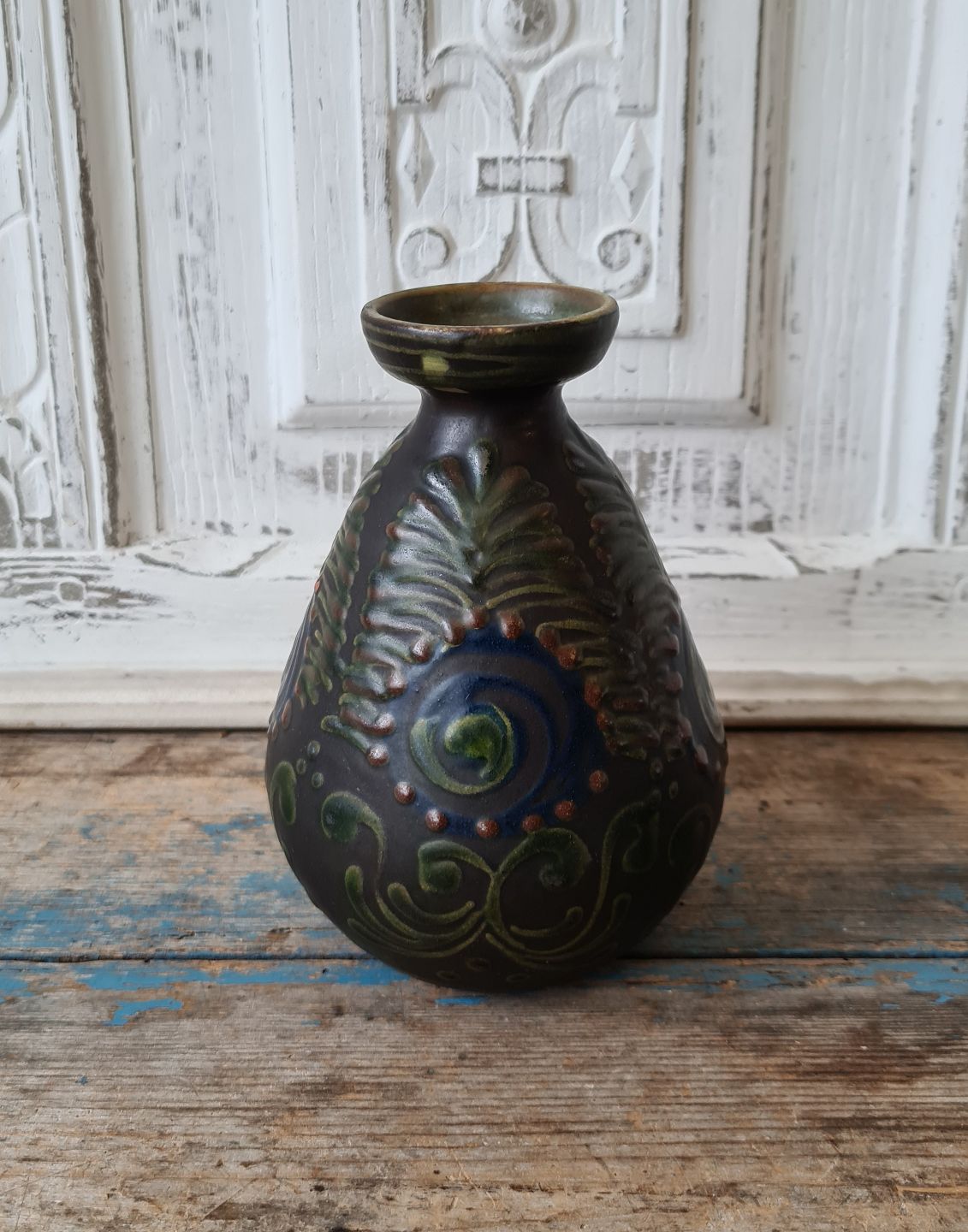 Kähler vase - kohorns decorated in blue, green and brown colors.