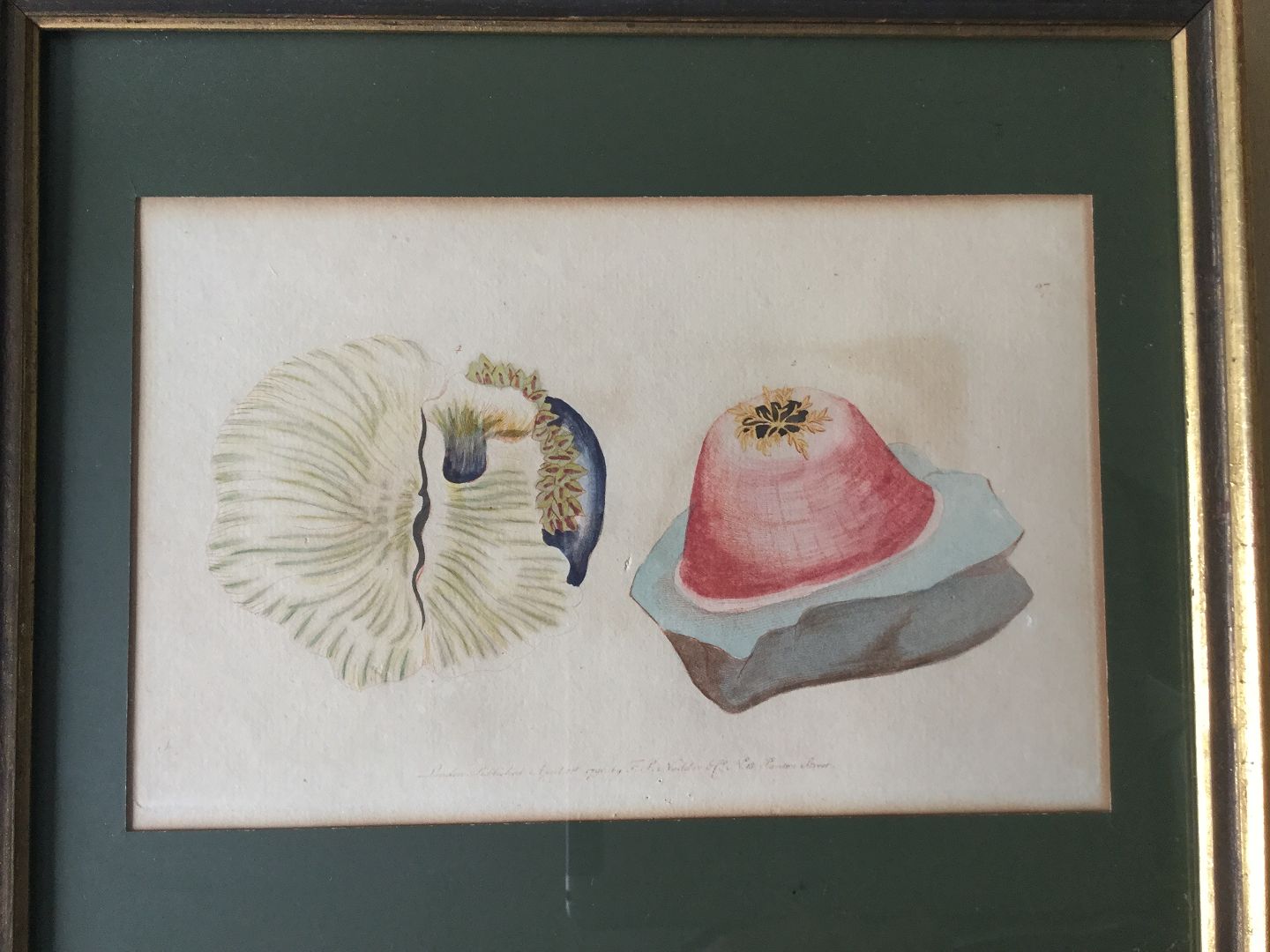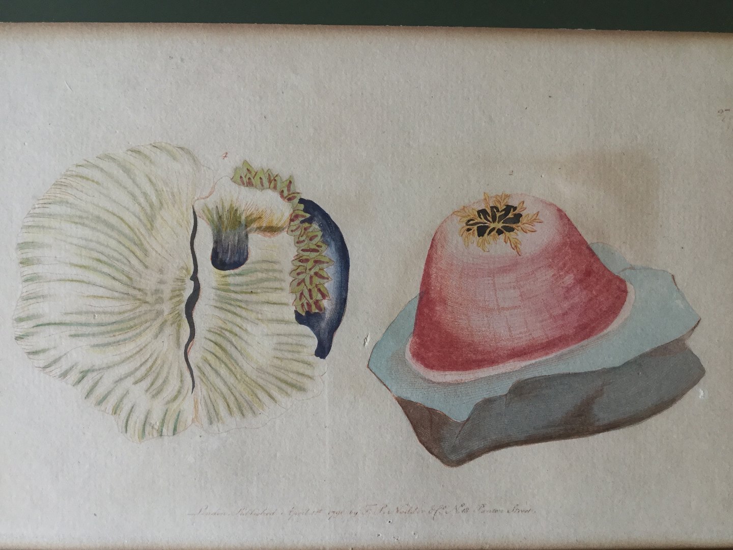 Text available in Danish: Engelsk, håndkoloreret kobberstik fra 1790 af George Shaw - Søanemone.