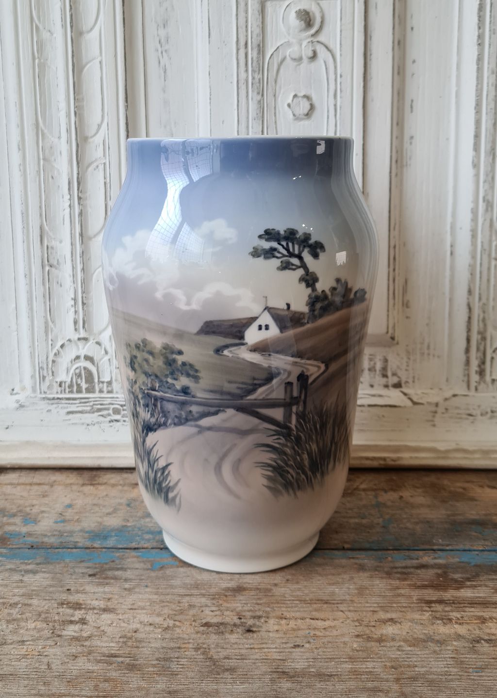 Royal Copenhagen vase dekoreret med landskabs motiv