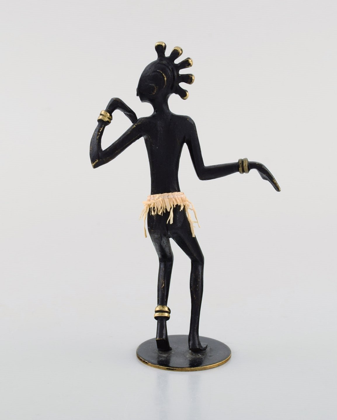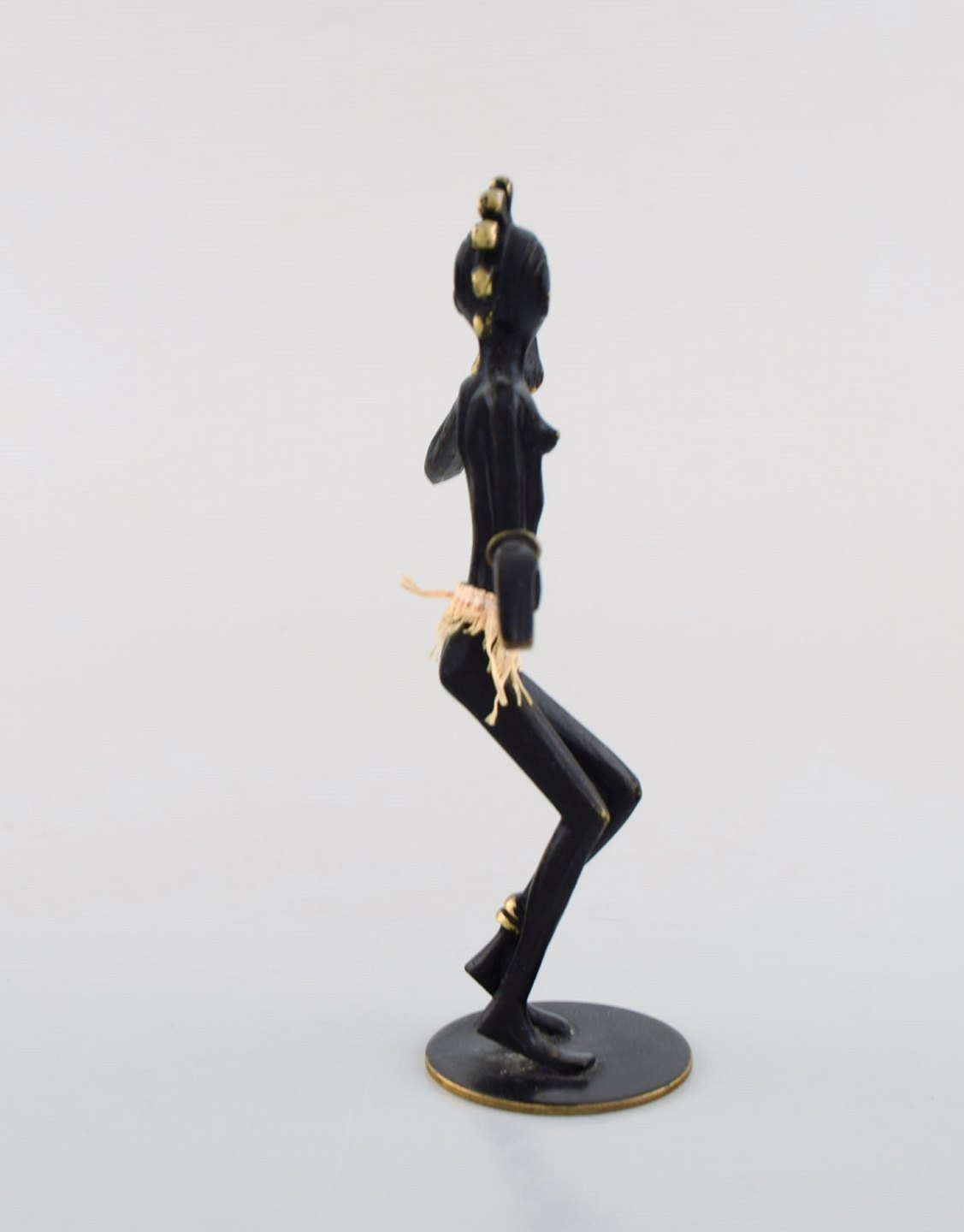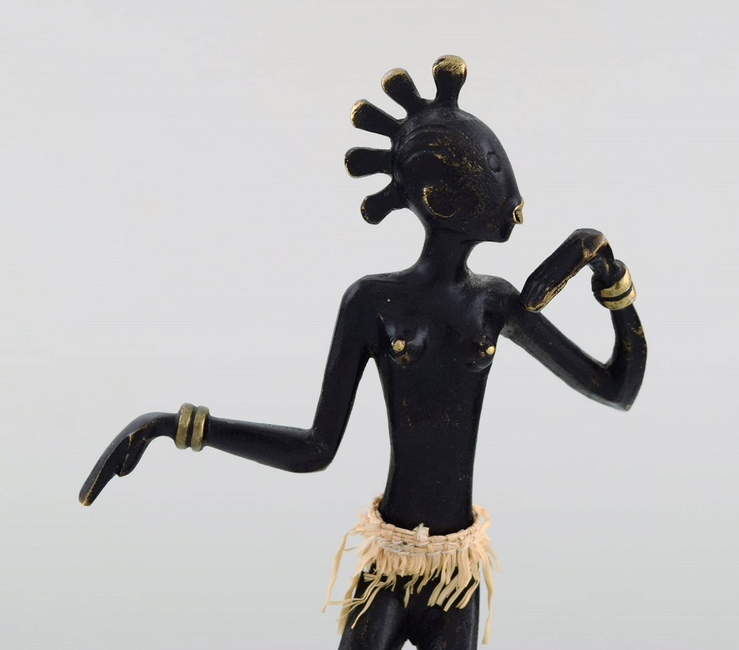 Karl Weiler, Pforzheim, Germany. Nude "Negresse" sculpture in bronze with grass skirt. 1940's.