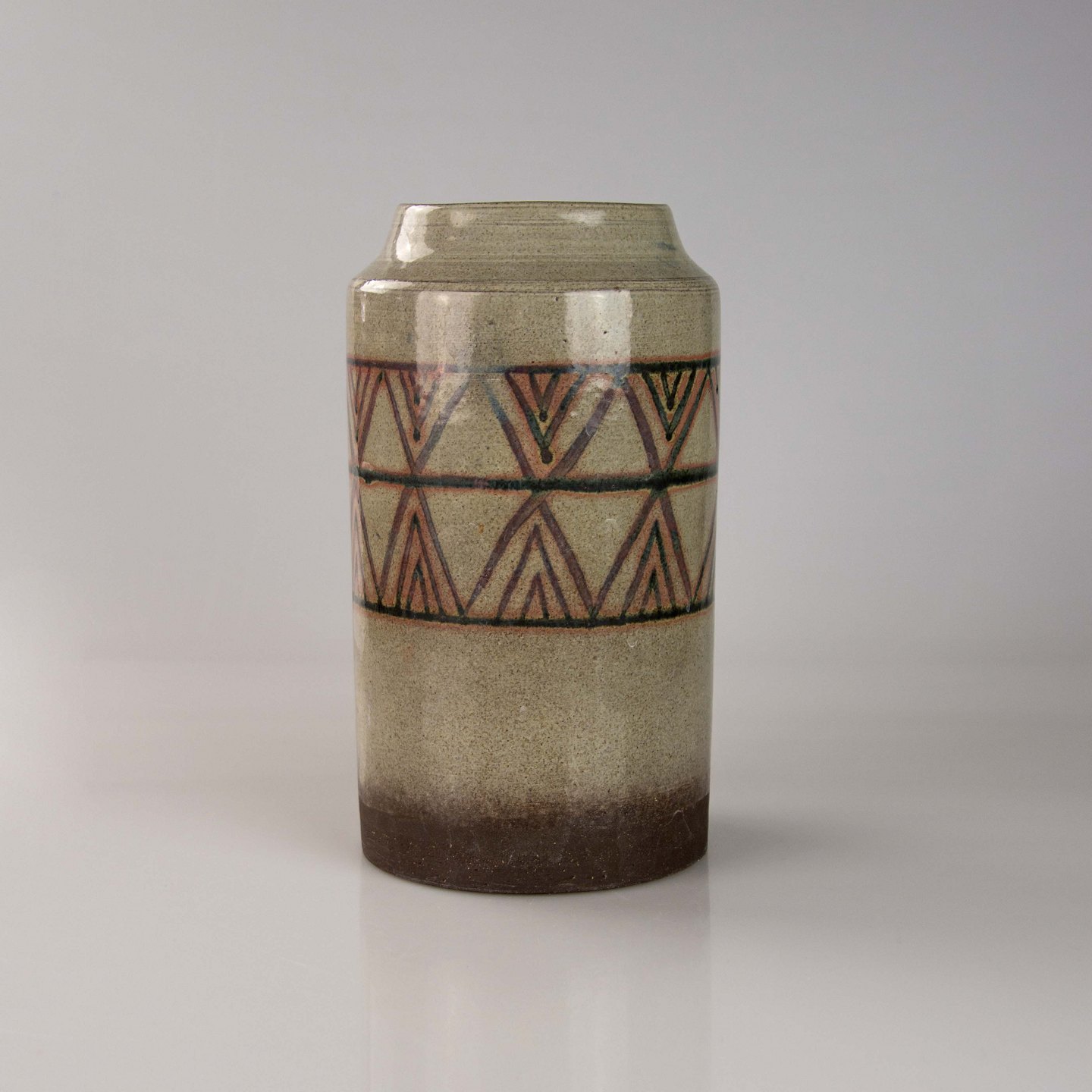 Vase i keramik med gråbrun glasur og trekantet mønster