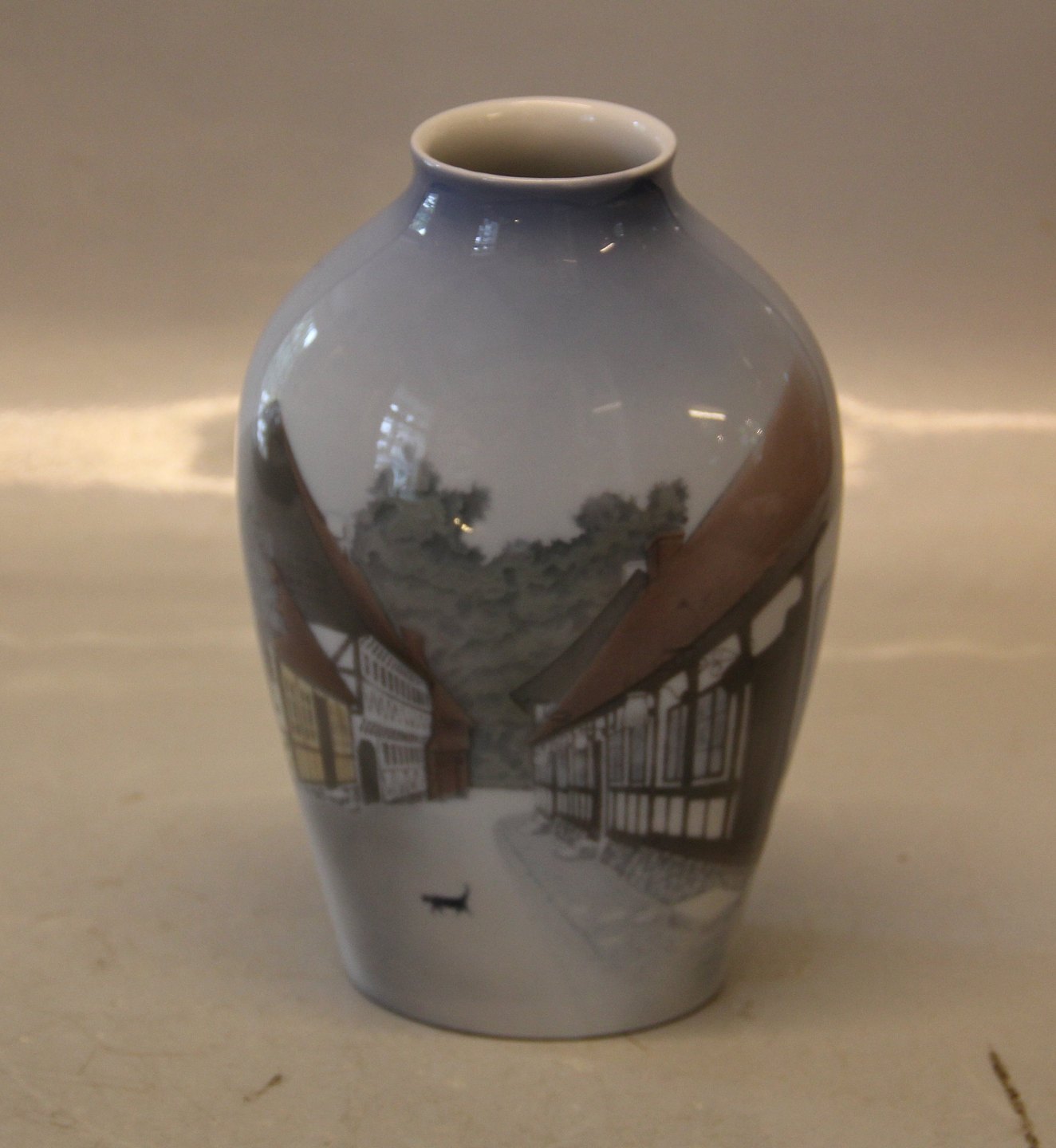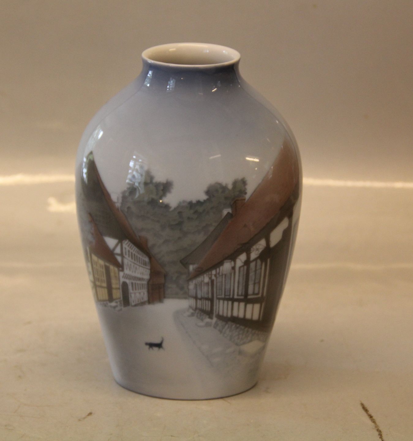 B&G 1302-6238 Vase - Old houses 19 cm "Den gamle By?" Mariager? Bing and Grondahl Marked with the three Royal Towers of Copenhagen. Bing & Groendahl In mint and nice condition