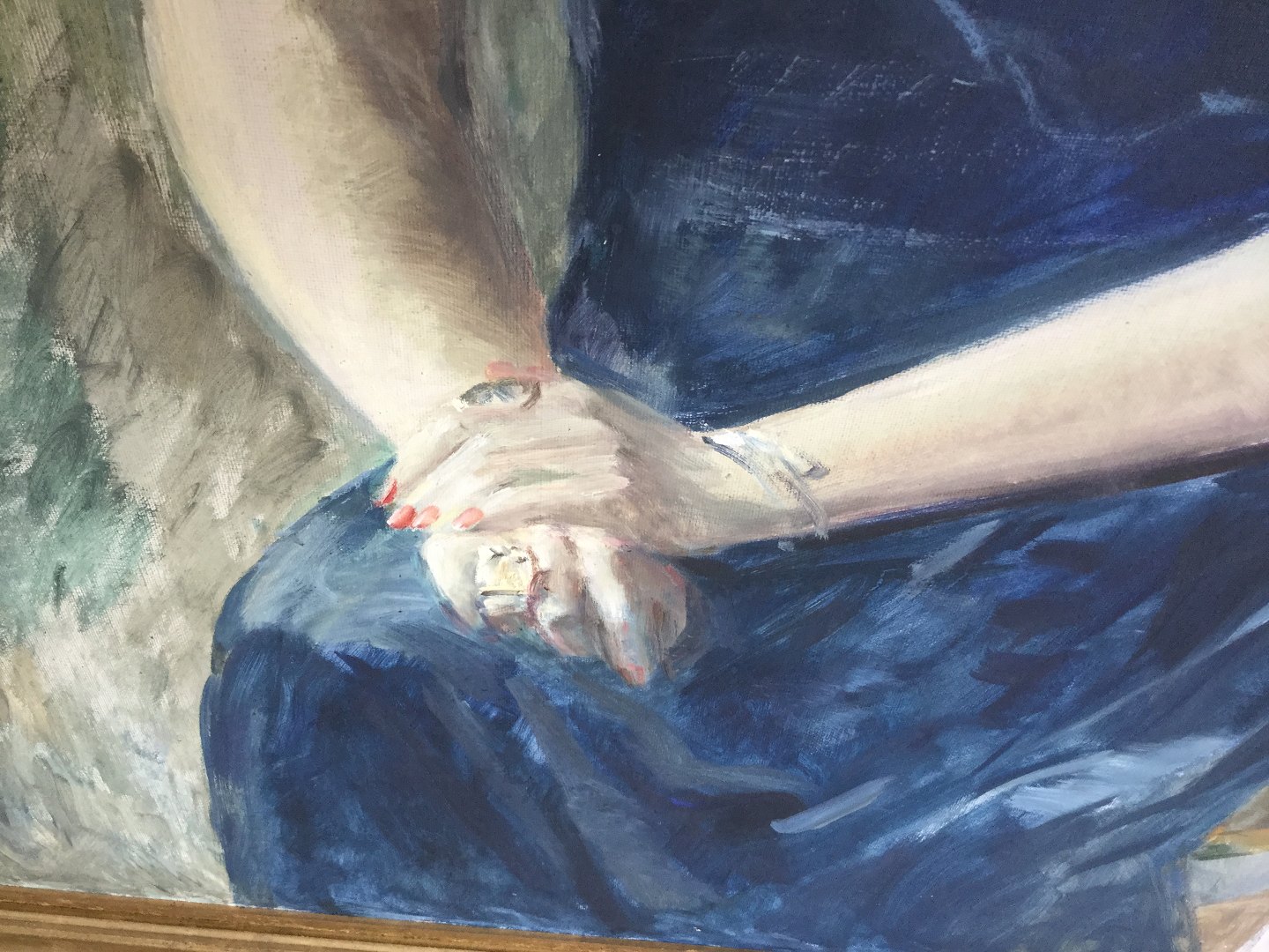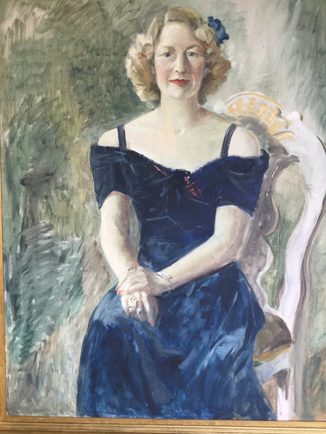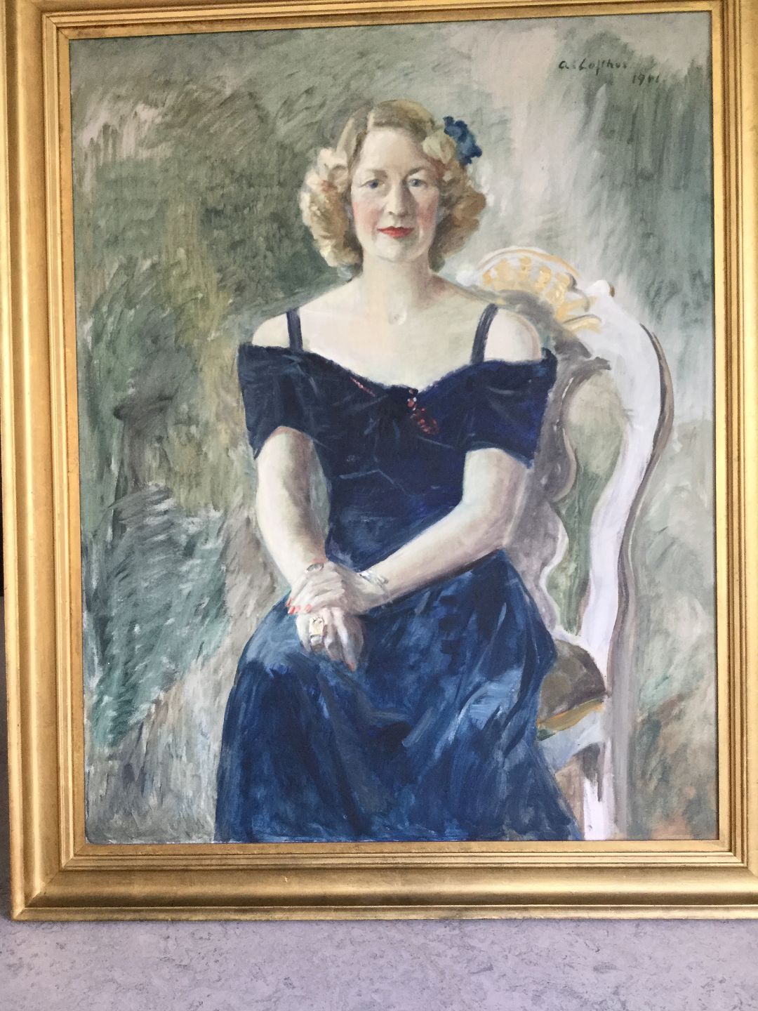 Helfigurs portræt af siddende kvinde i selskabstøj 1941.