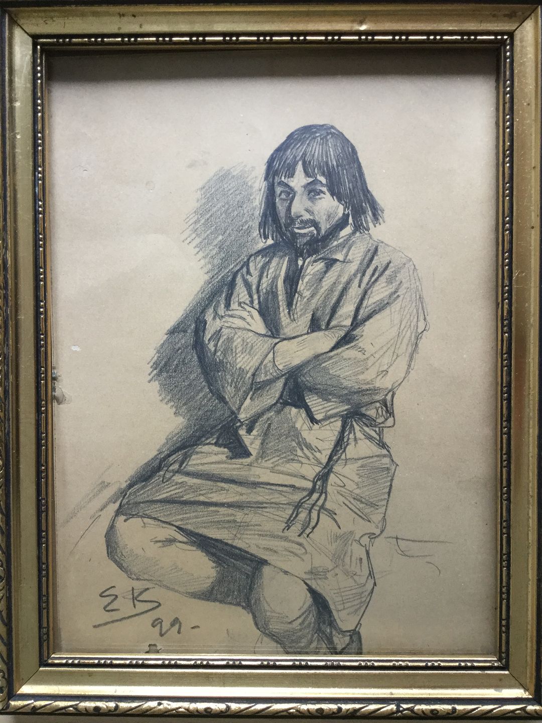 Tegning af Emil Krause - mand i kjortel 1899.