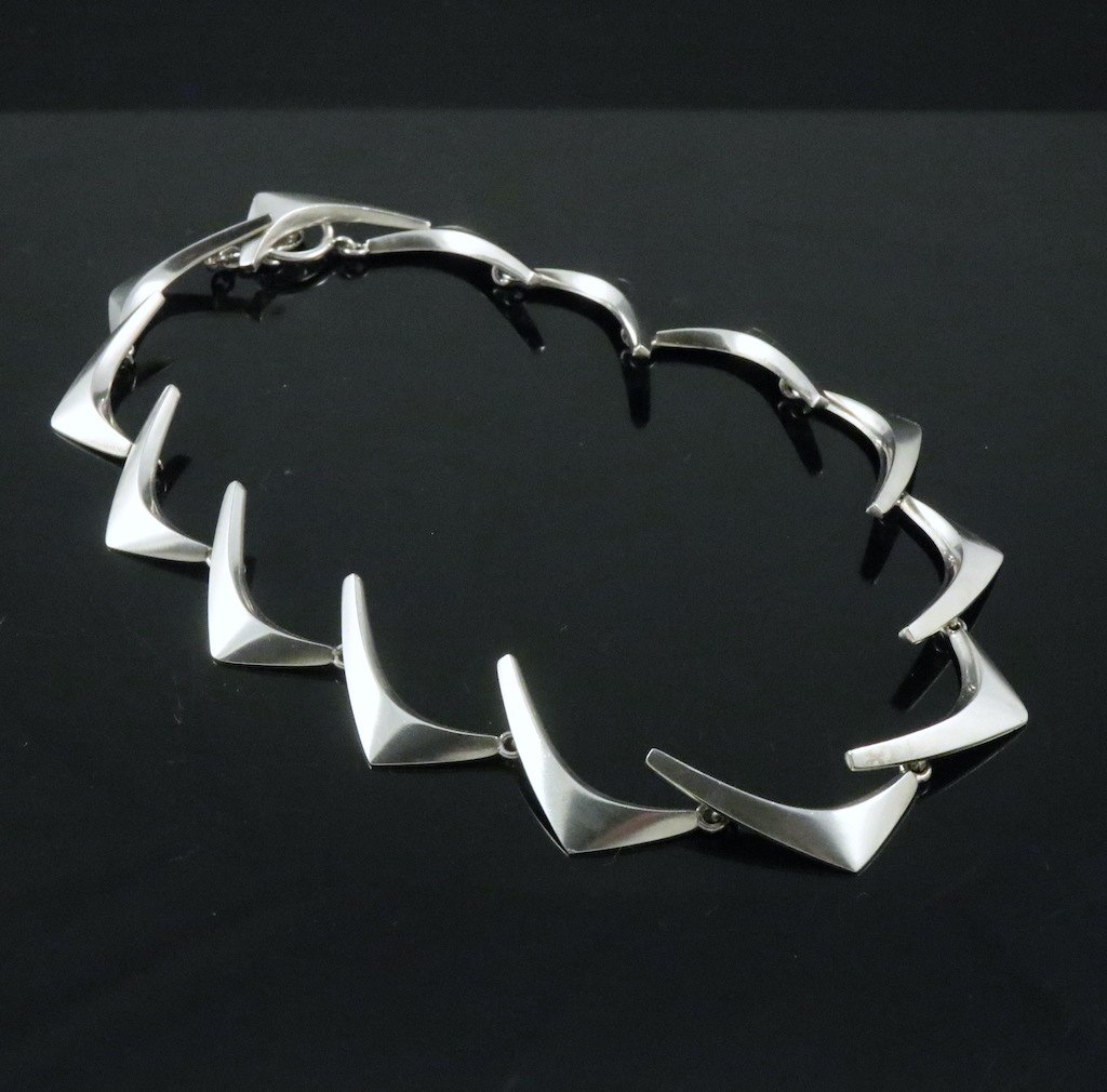 Text zugänglich auf Dänische: Eigil Jensen for Anton Michelsen. 'Boomerang' Halskæde i sterling sølv.