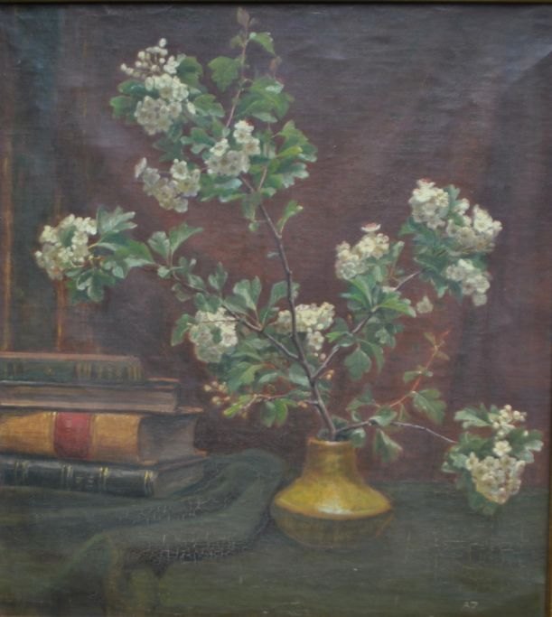 Johansen, Axel (1872 - 1938) Denmark: Arrangement with books and branch in vase