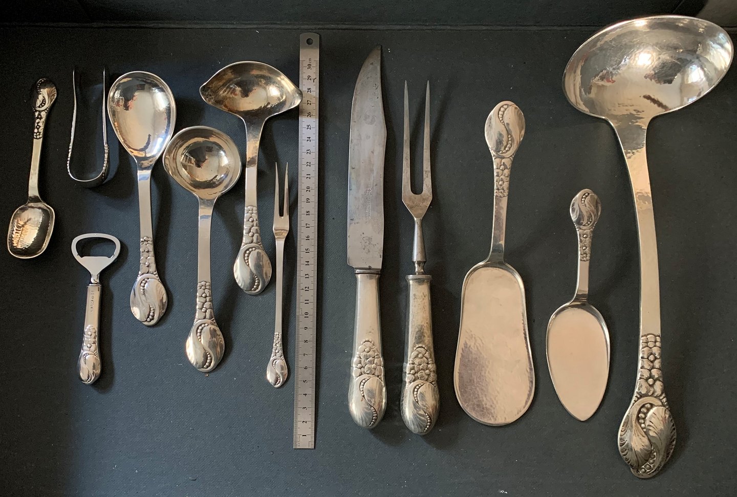 Evald Nielsen nr. 12 bestik i sølv.