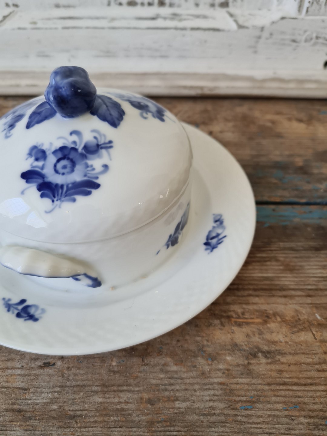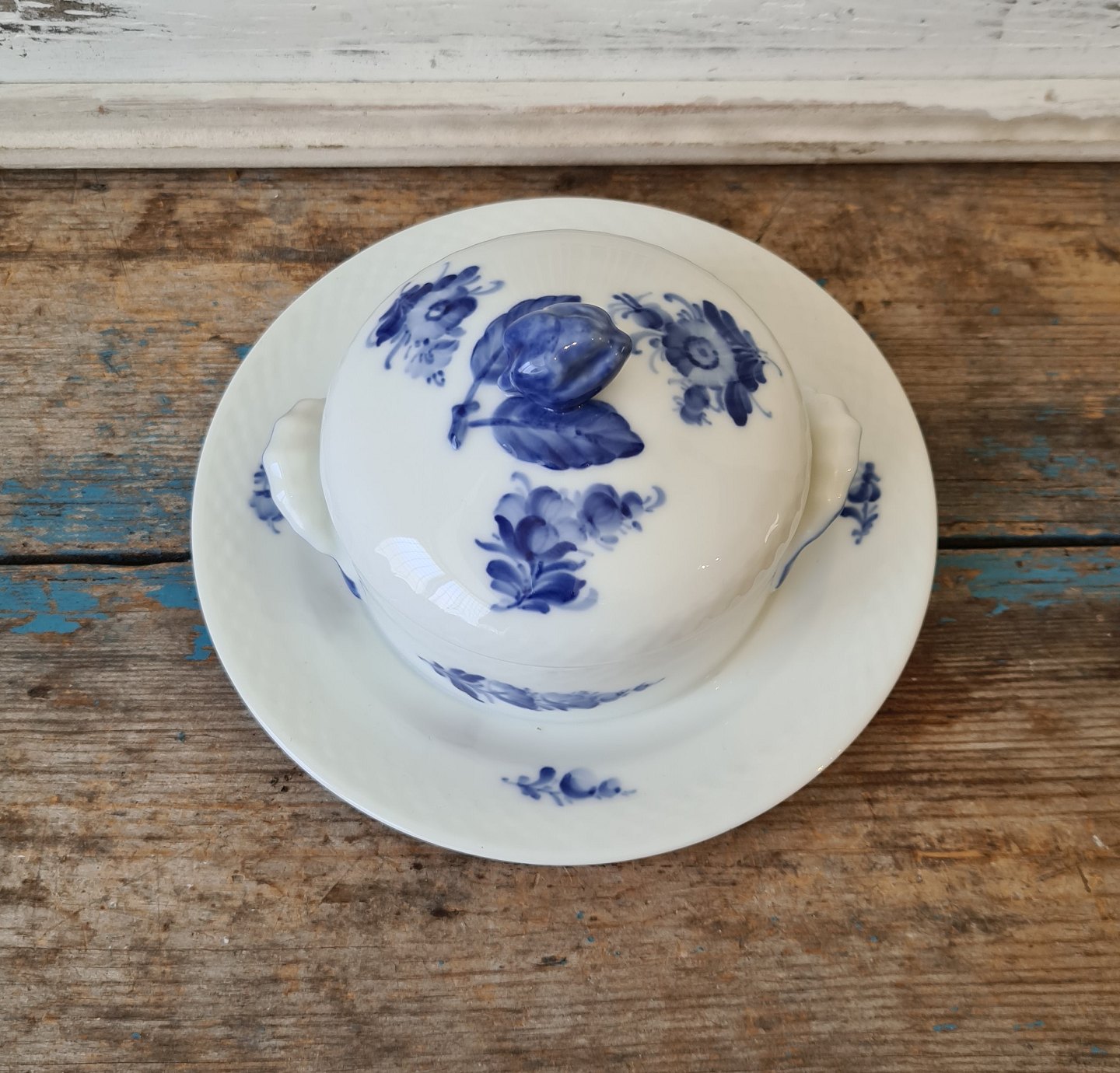 Royal Copenhagen Flettet Blå Blomst smørskål på fast underfad