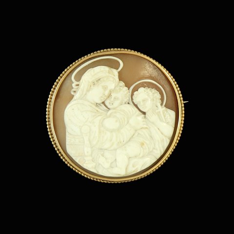 H. Fischer - Kbh. Kamé broche i 14k Guld.