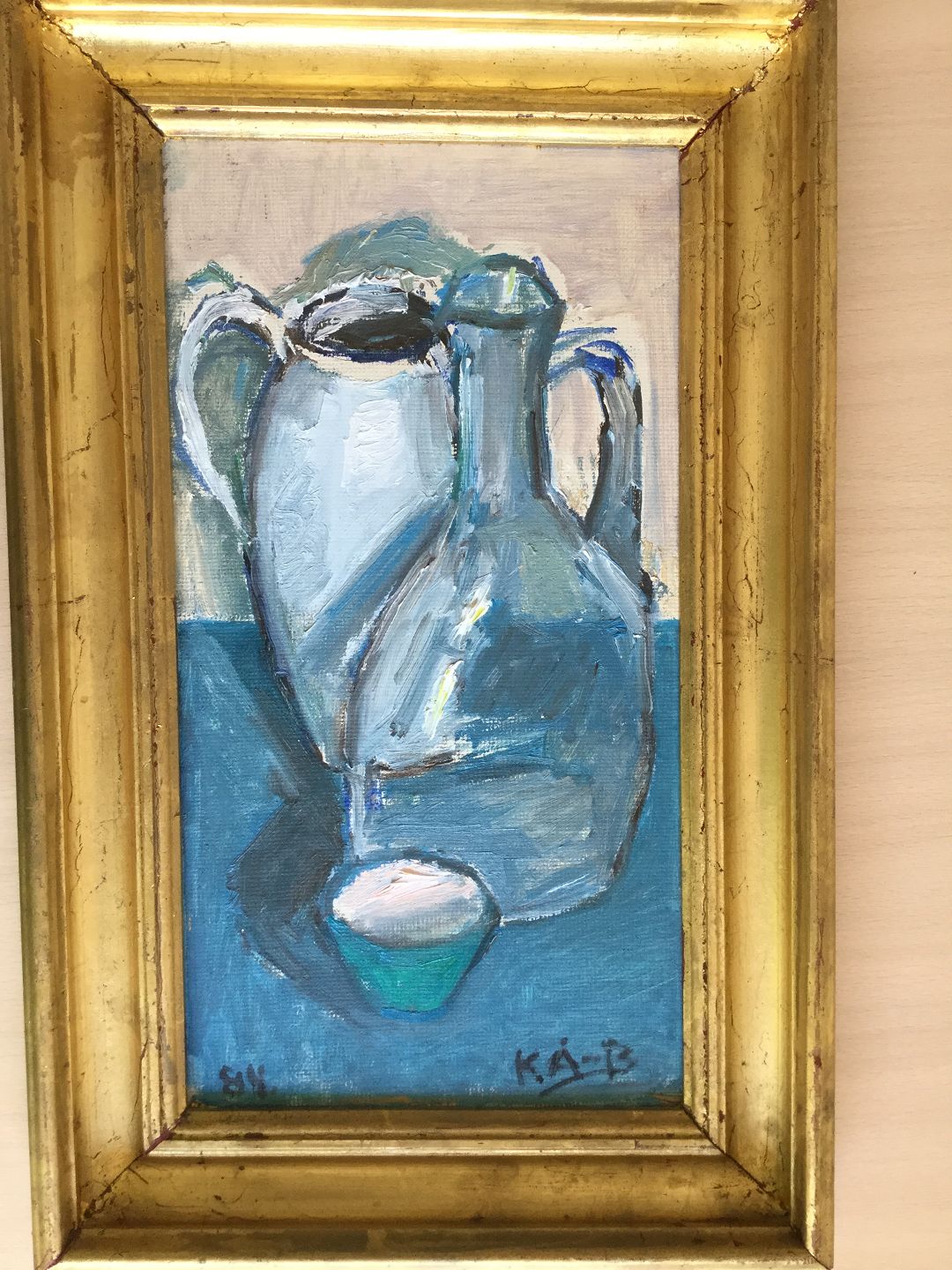 Maleri K.A. Borchsenius - Opstilling med kande og krukke 1984.