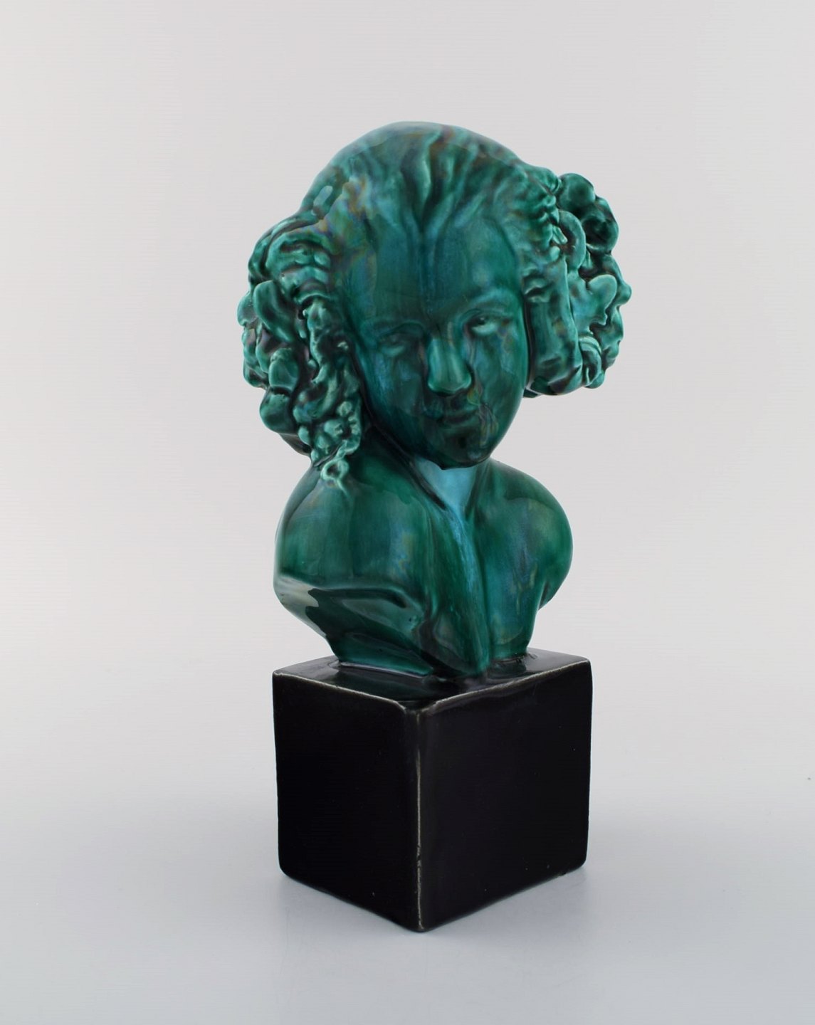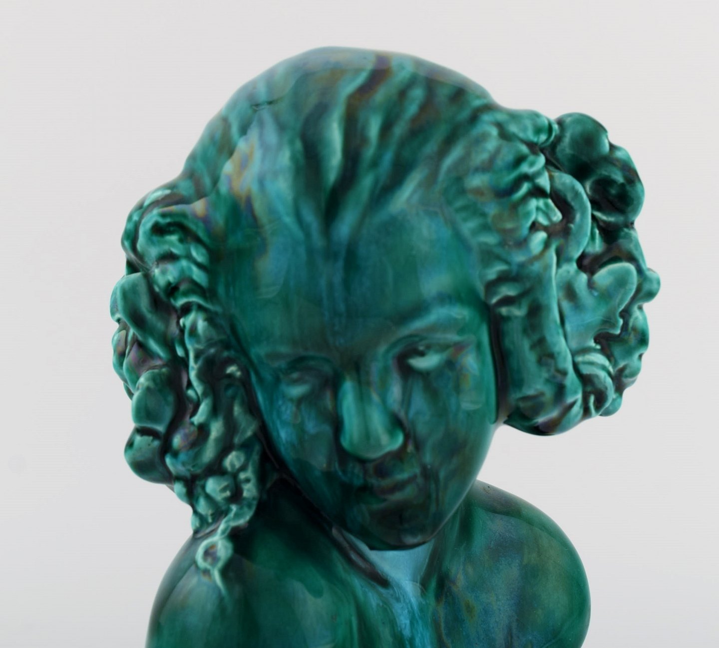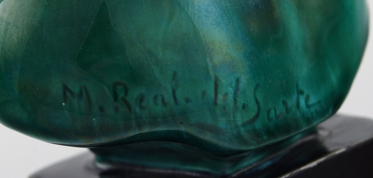 Maxime Real del Sarte (1888-1954) for Sevres. Art deco skulptur af ung kvinde i glaseret keramik. 1930'erne.