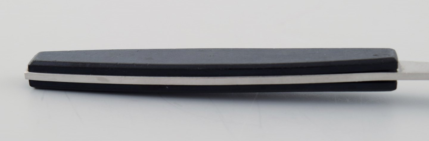 Henning Koppel for Georg Jensen. Strata sorbetske i rustfrit stål og sort plast. 1960/70'erne. 25 stk på lager.