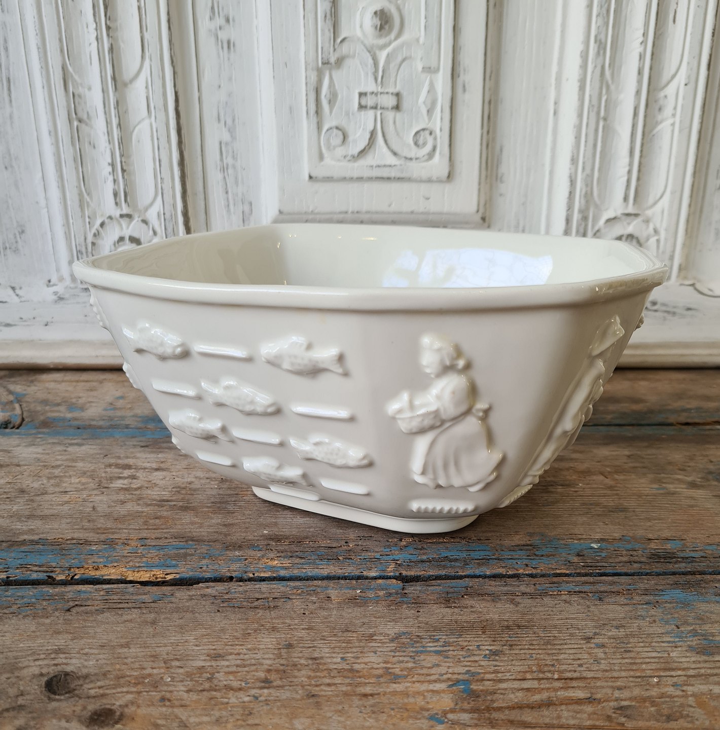 Bode Willumsen for Royal Copenhagen stor Blanc de Chine skål med fiskemotiver i relief
