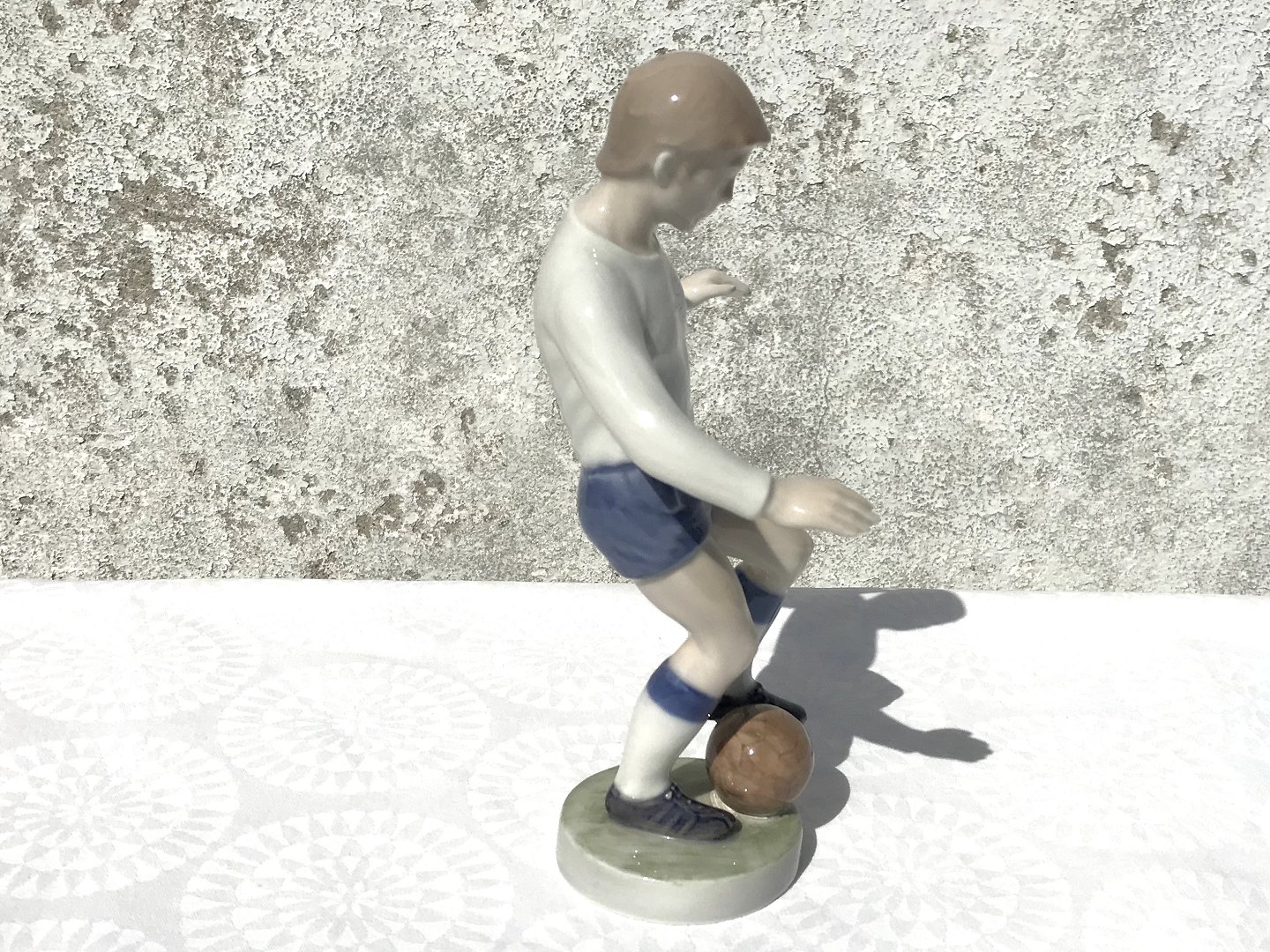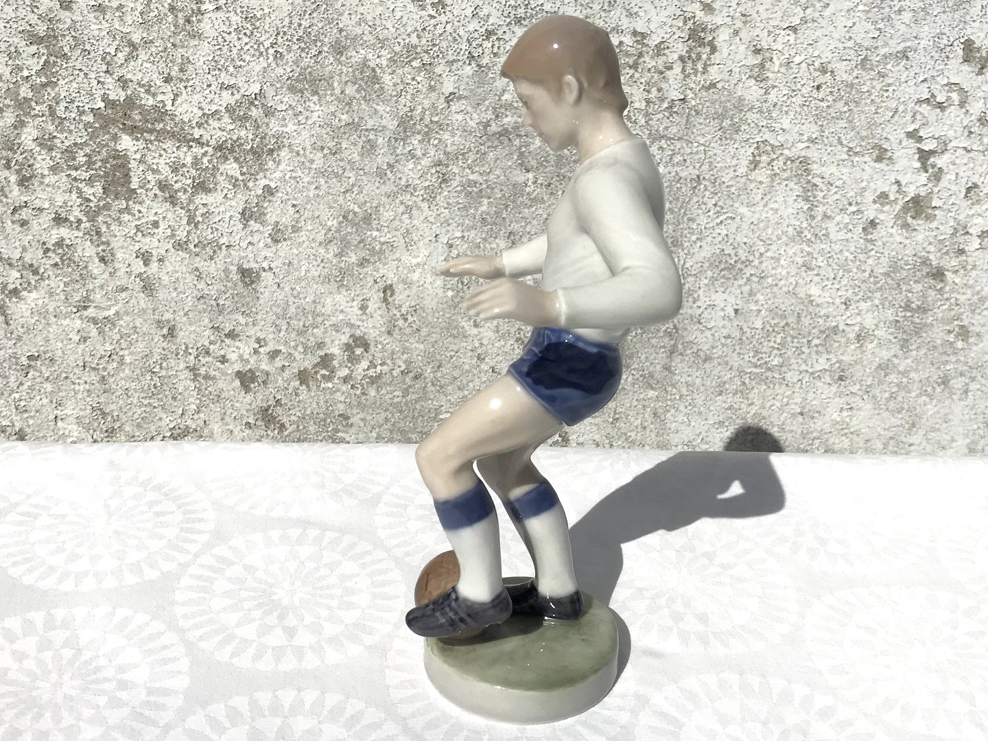 Royal Copenhagen, Fodboldspiller #4989, 19cm høj, 12cm bred, Medarbejdersortering, Design John Galster *Pæn men med glasur fejl på bagsiden af under arm*