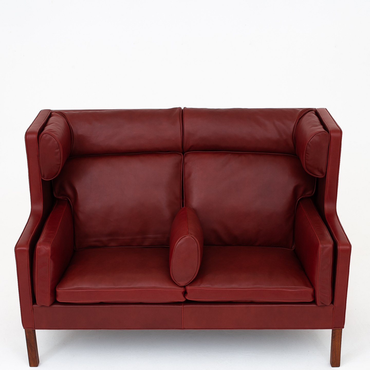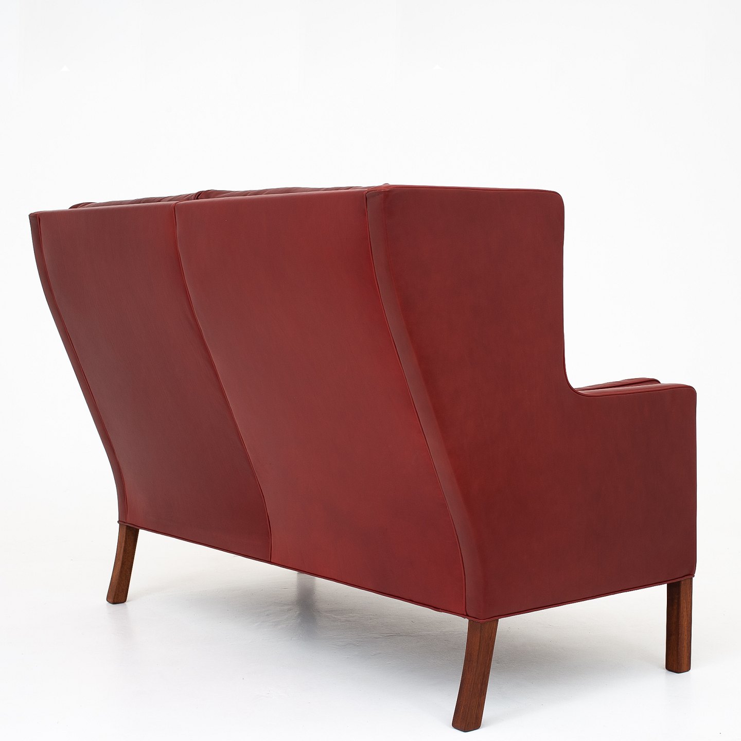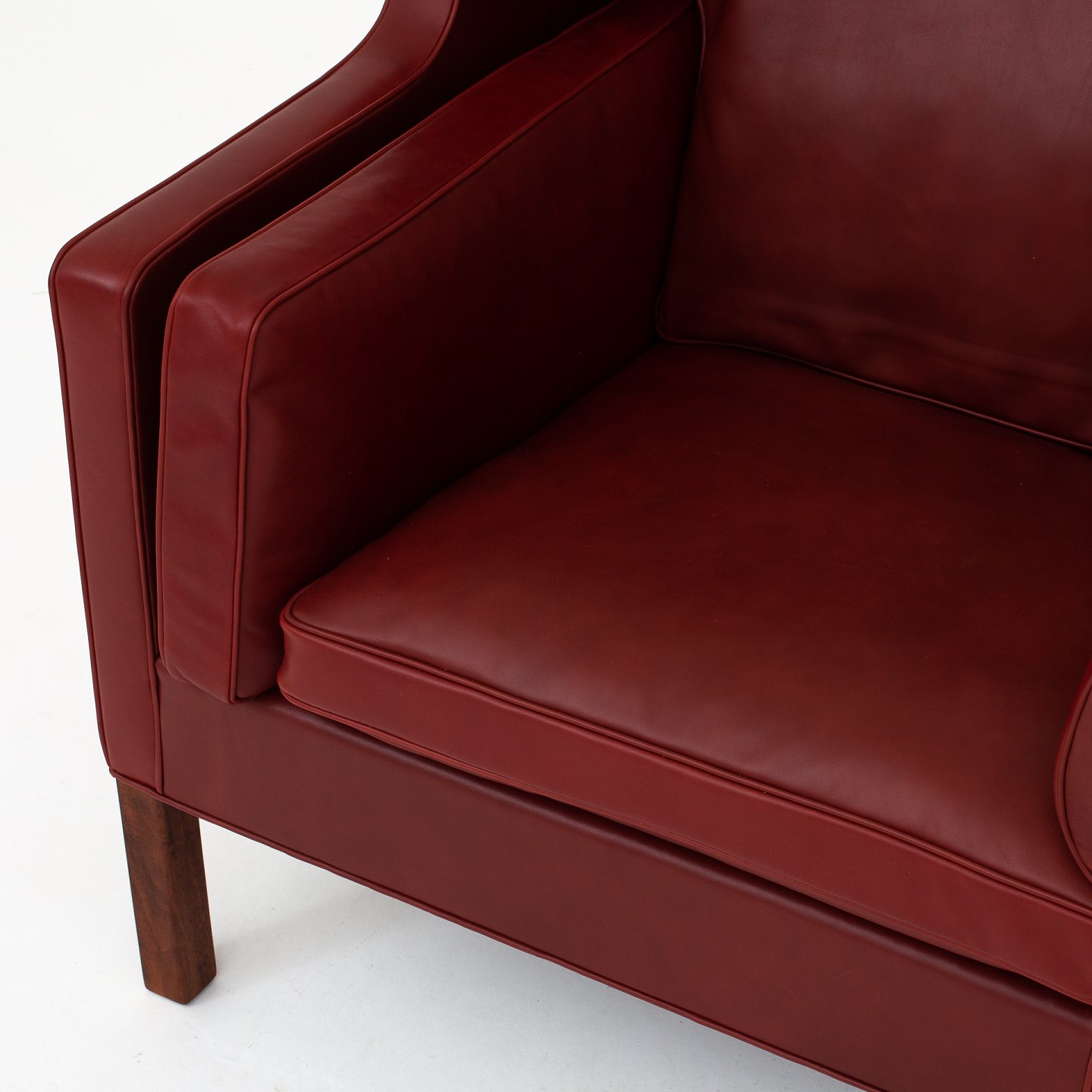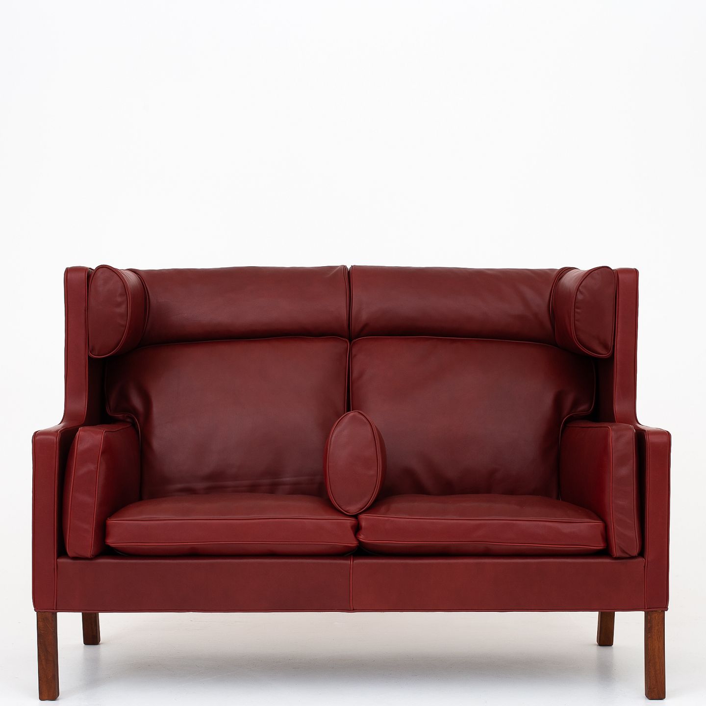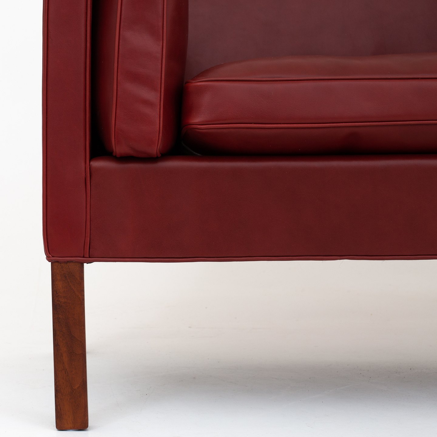 BM 2192 - Nybetrukket Kupésofa i Elegance Indian red-læder og ben i mahogni. KLASSIK tilbyder polstring af sofaen med stof eller læder efter eget valg...
