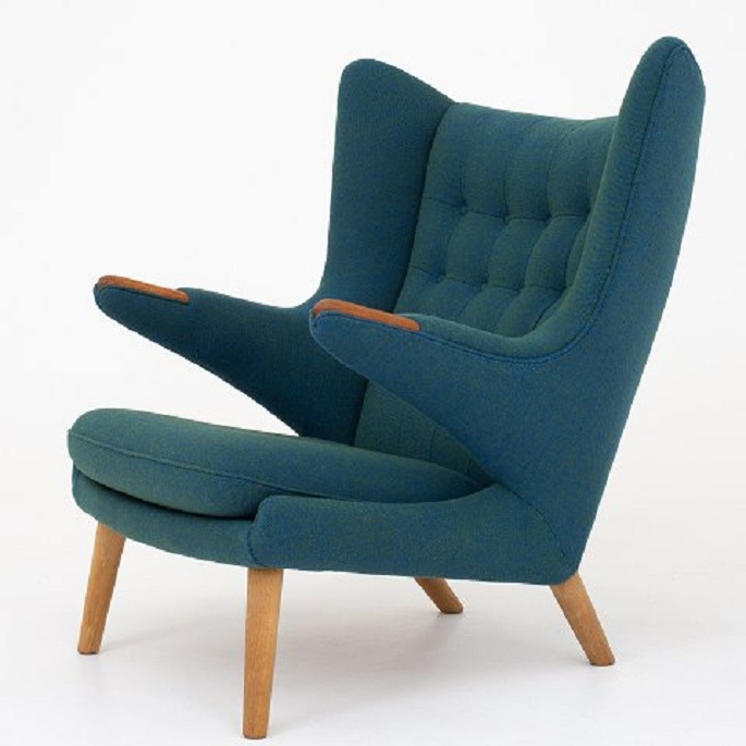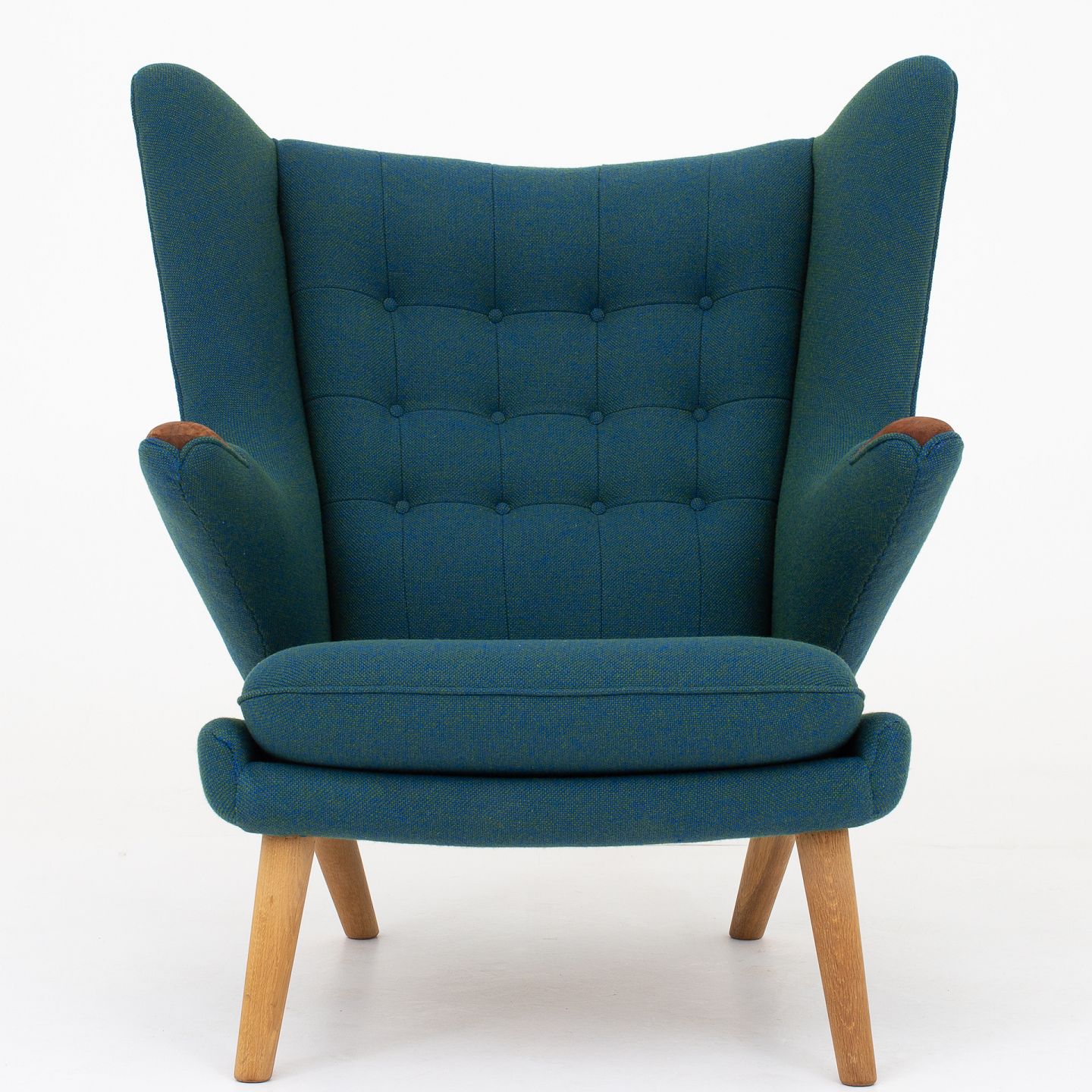 AP 19 - Reupholstered Papa Bear in Hallingdal wool col.: 890 with nails in teak and legs in oak.