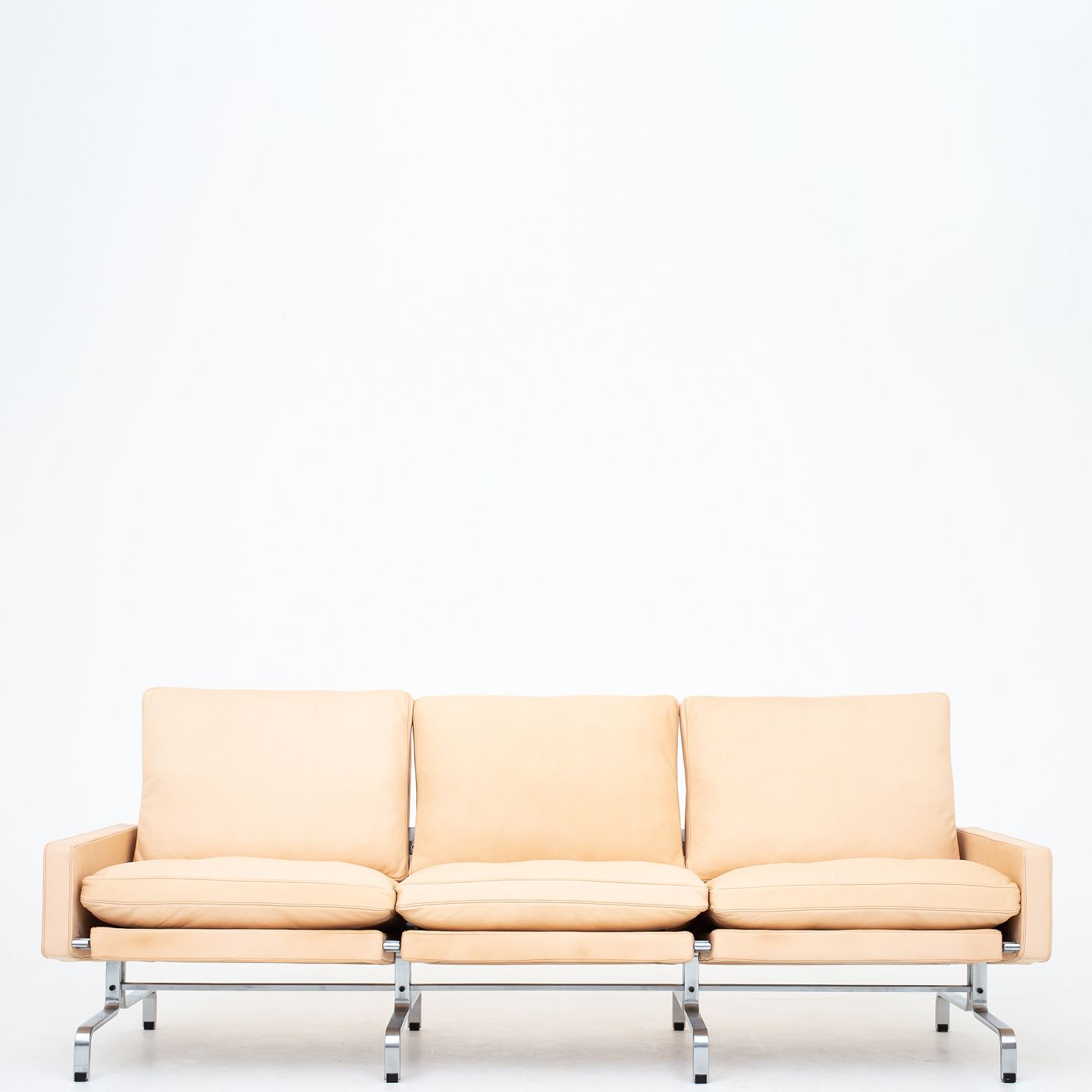 PK 31/3 - Nybetrukket 3 pers. sofa i naturlæder på stel af børstet stål.