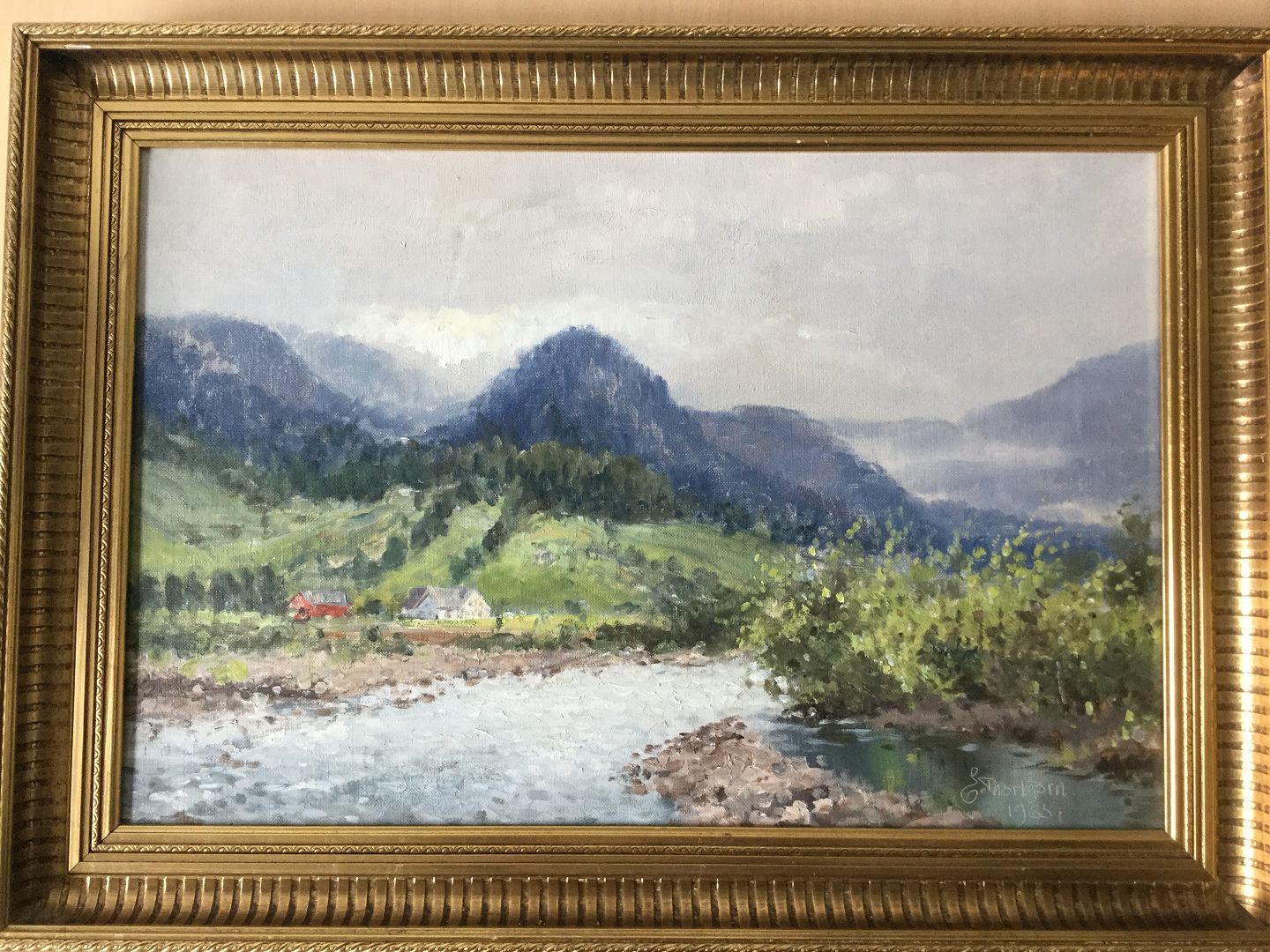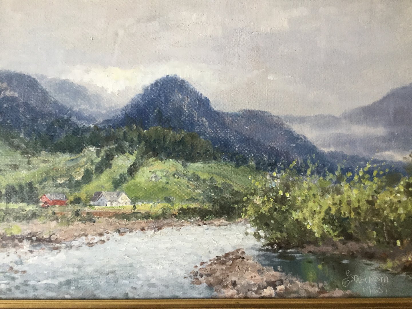 Maleri af E. Thorbjørn - Norsk landskab 1965.