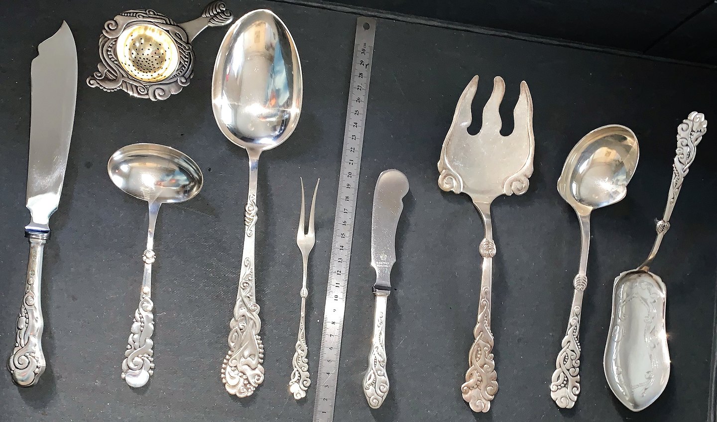 Vi et stort udvalg af serveringsdele og andre specielle dele i Tang sølvbestik.