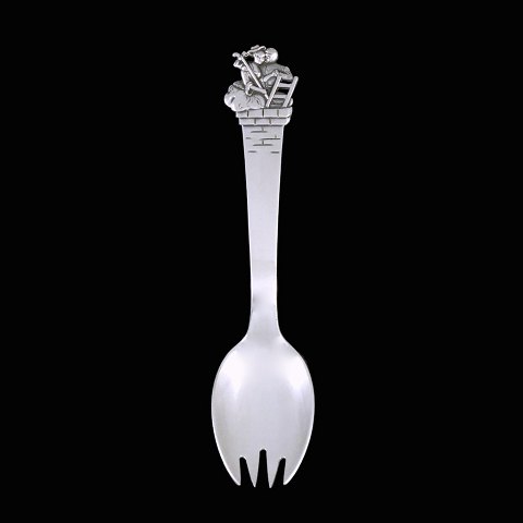 H.C. Andersen Eventyrbestik. 'Hyrdinden og Skorstensfejeren'. Skegaffel i sølv med motiv fra H.C. Andersens eventyr. L. 14,2 cm.