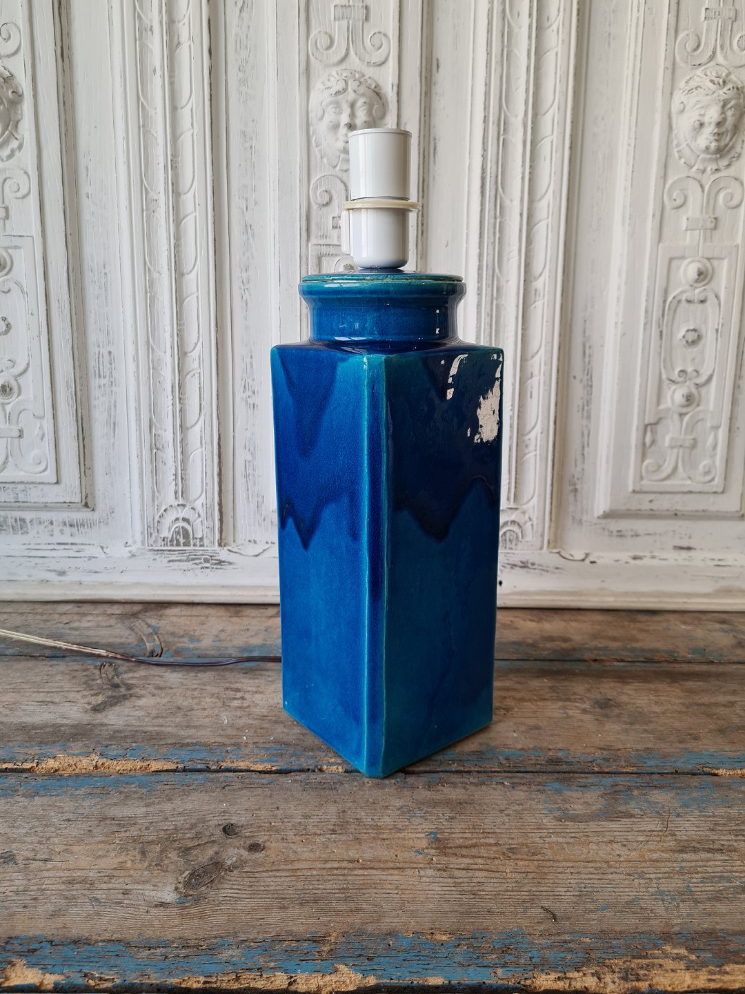 Large Niels Kähler table lamp with beautiful turquoise glaze.