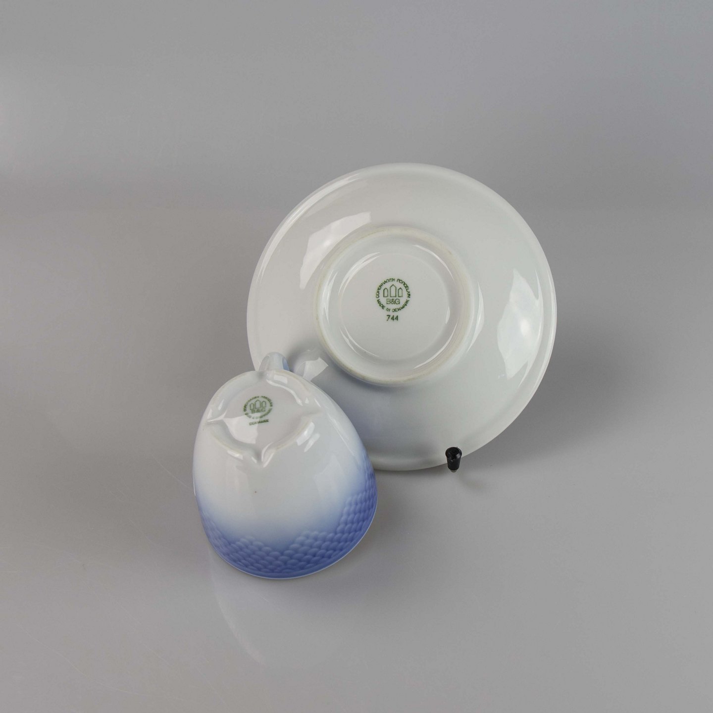 Kop fremstillet i hotelporcelæn med skelform i gradueret blå nuancer.