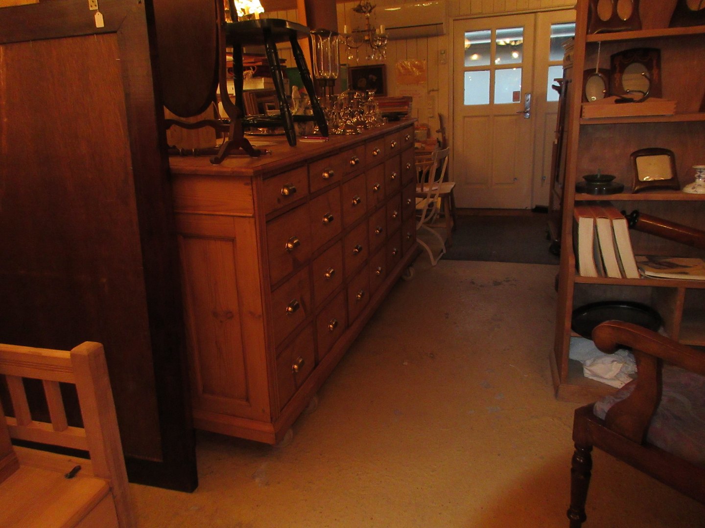 Stor salgsudstilling med restaurerede møbler håndpolerede mahognimøbler, afsyrede fyrretræsmøbler, malede træmøbler, kun originale gamle og antikke møbler.