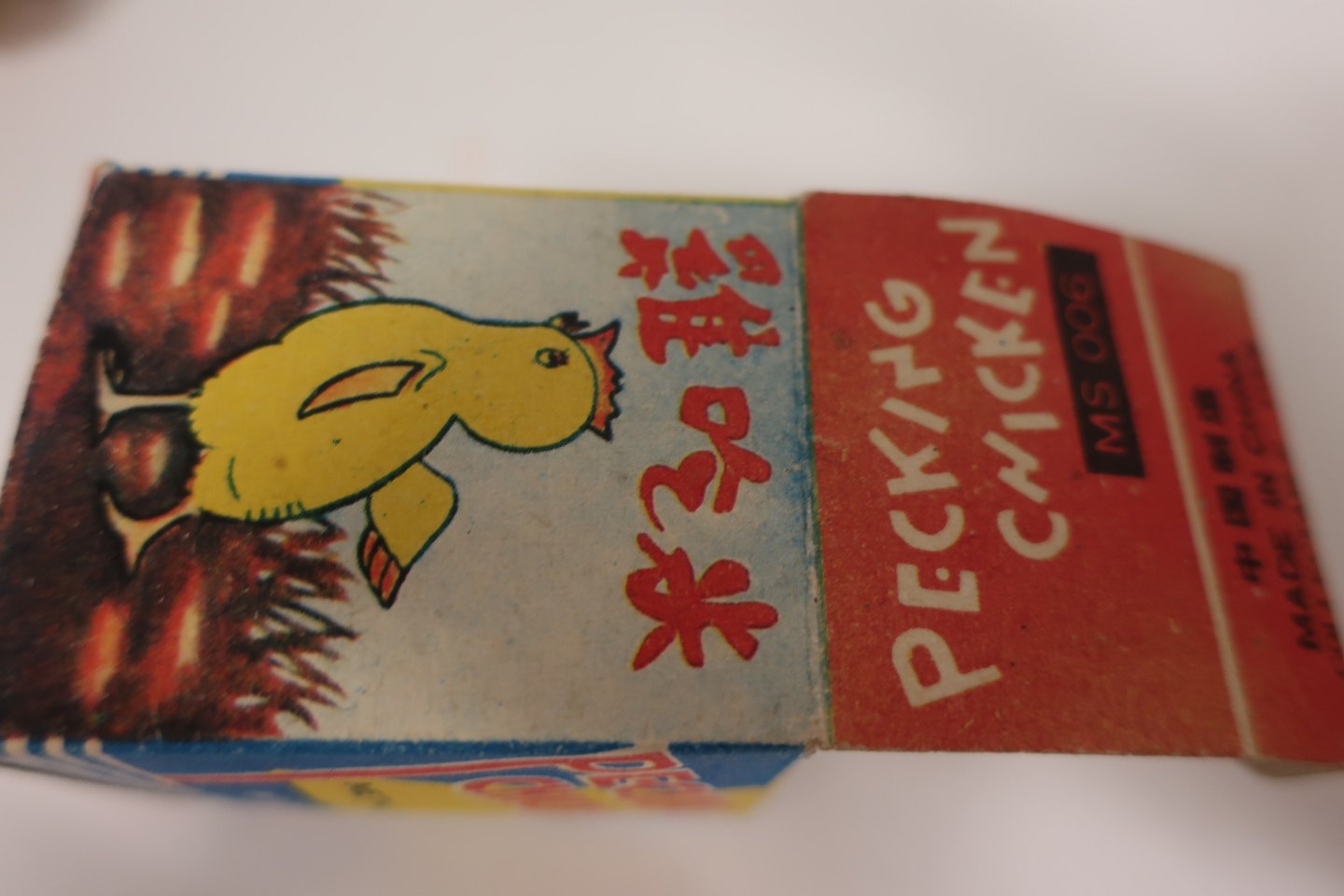 Text at the box: "Pecking Chicken", "Metal Made", "Wind up", "MS 006"