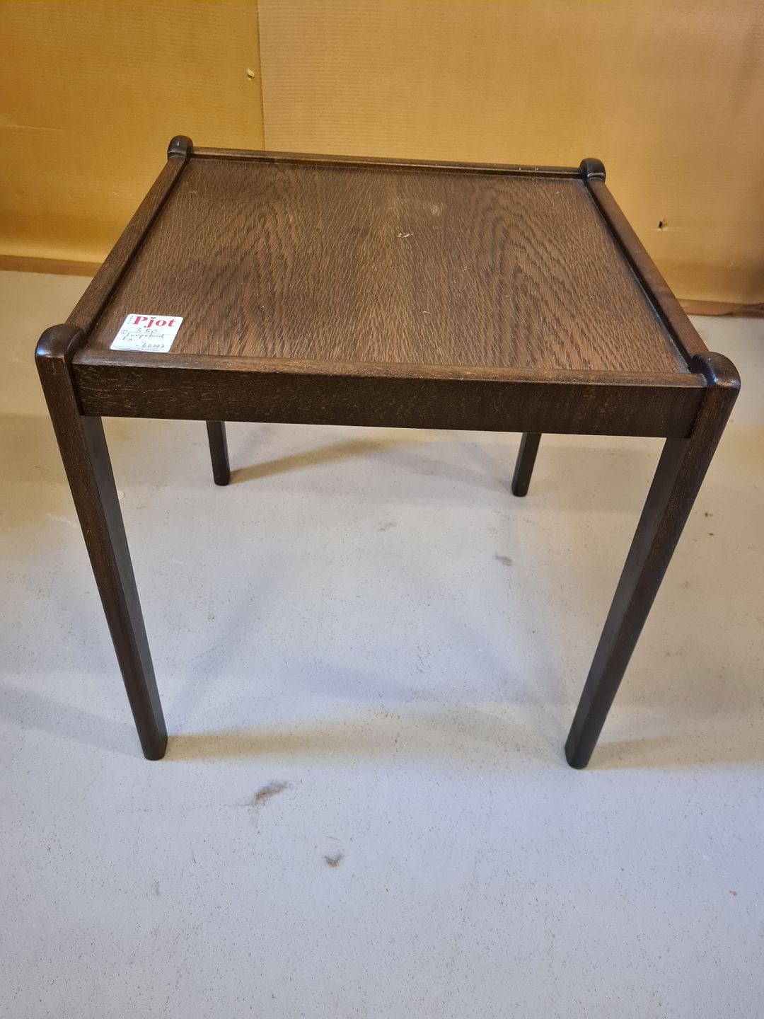 Lampebord i bejdset egetræ med glasplade fra 1970´erne. Pænt og uden nævneværdige brugsspor.