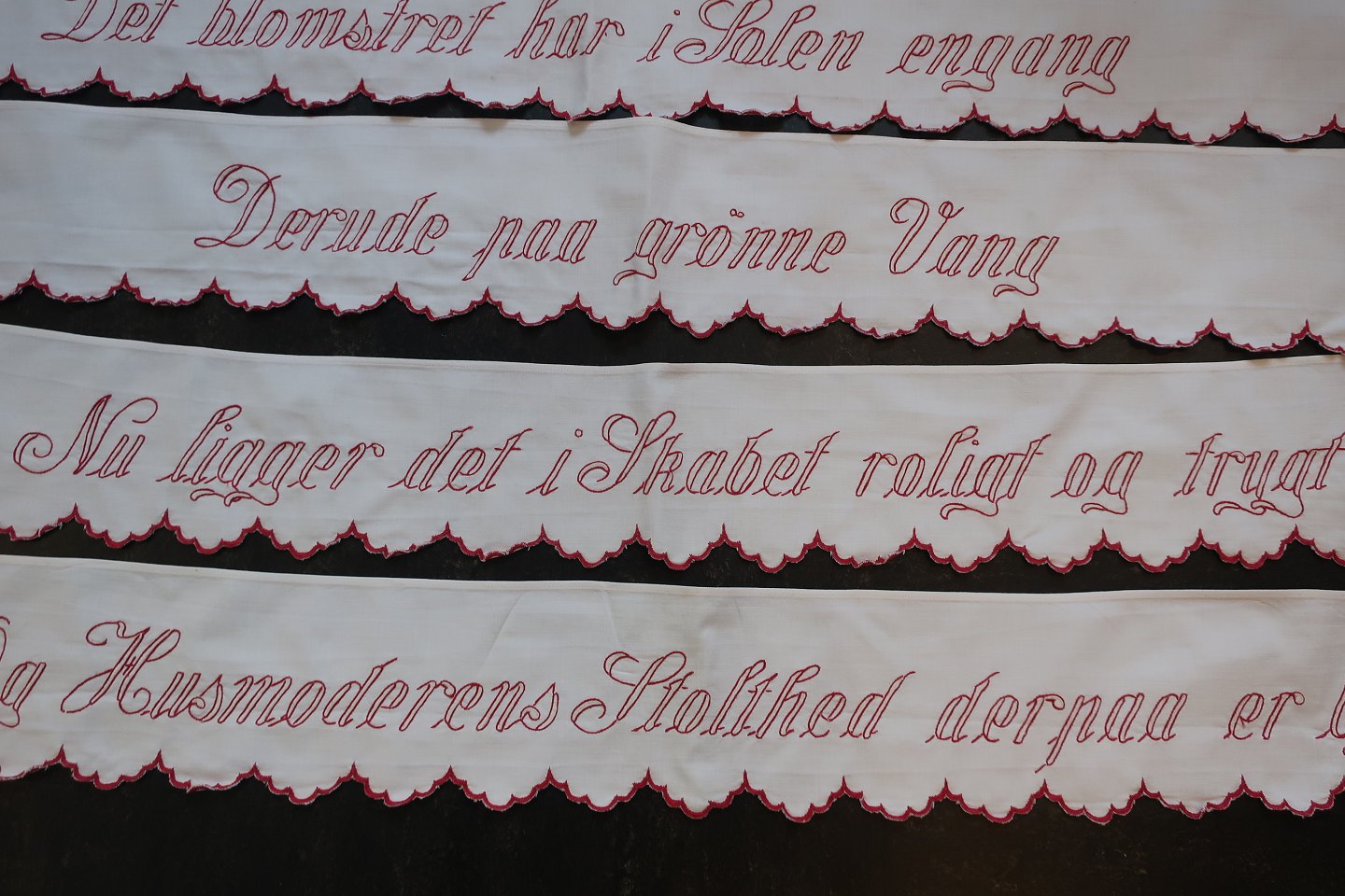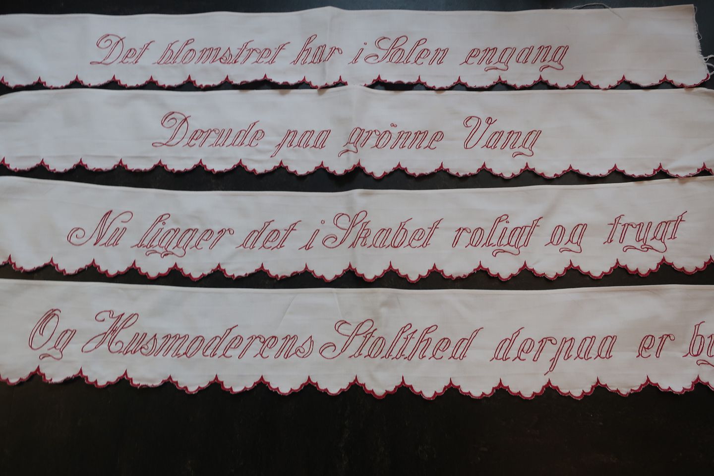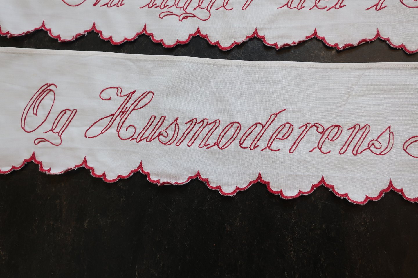 The antique, Danish linen and fustian is our speciality and we always have a large choice of tea towels, table clothes, napkin/serviette etc.