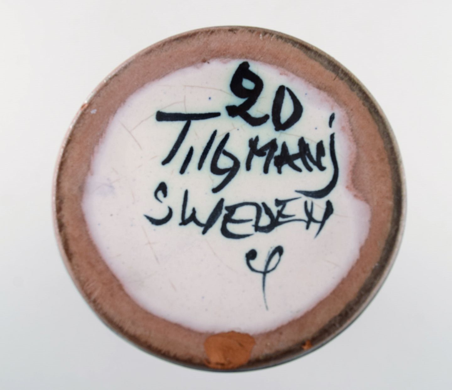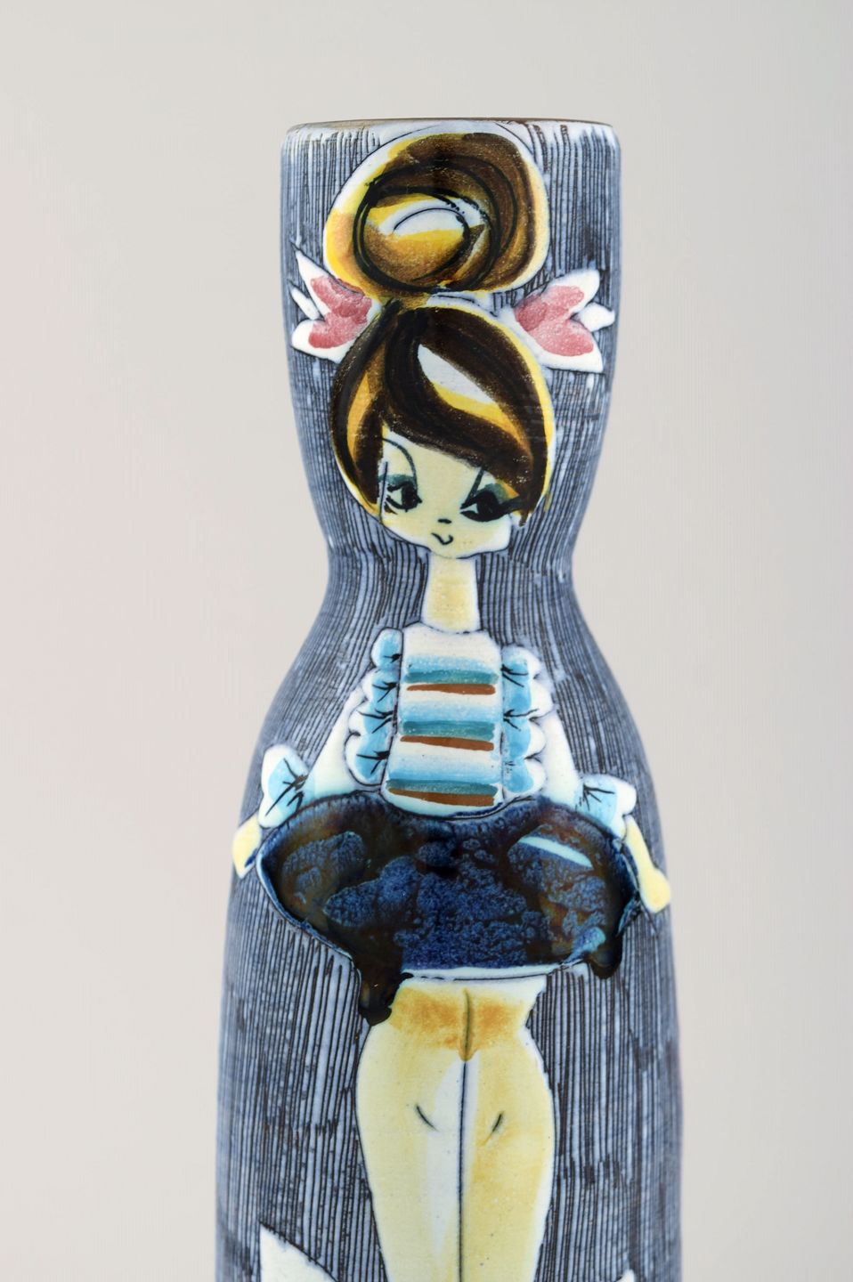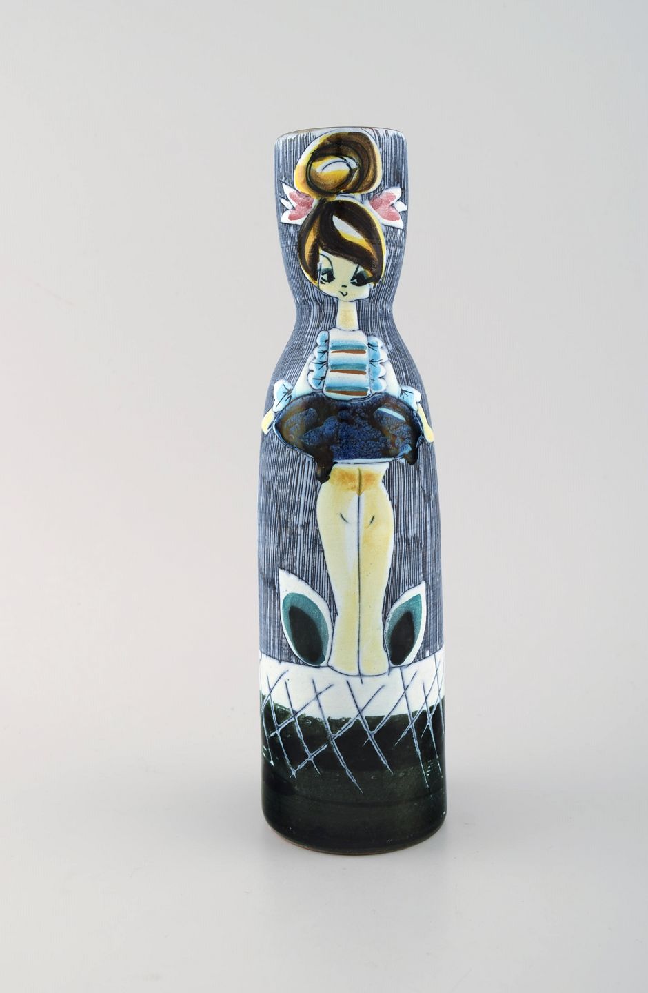 Tilgmans, Sverige. Vase i glaseret keramik med ung kvinde. Midt 1900-tallet.