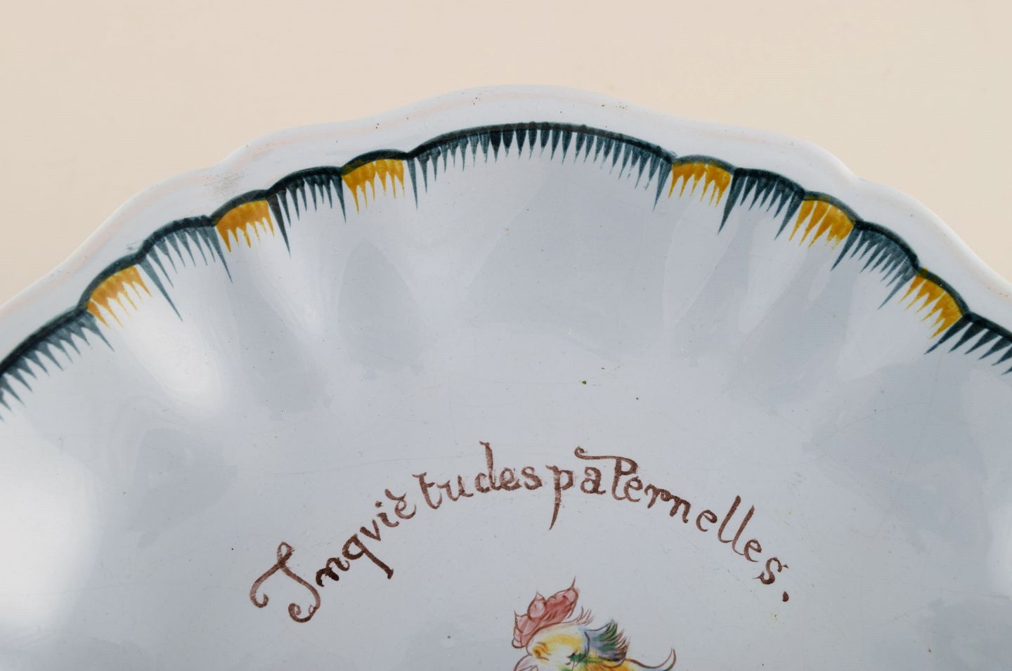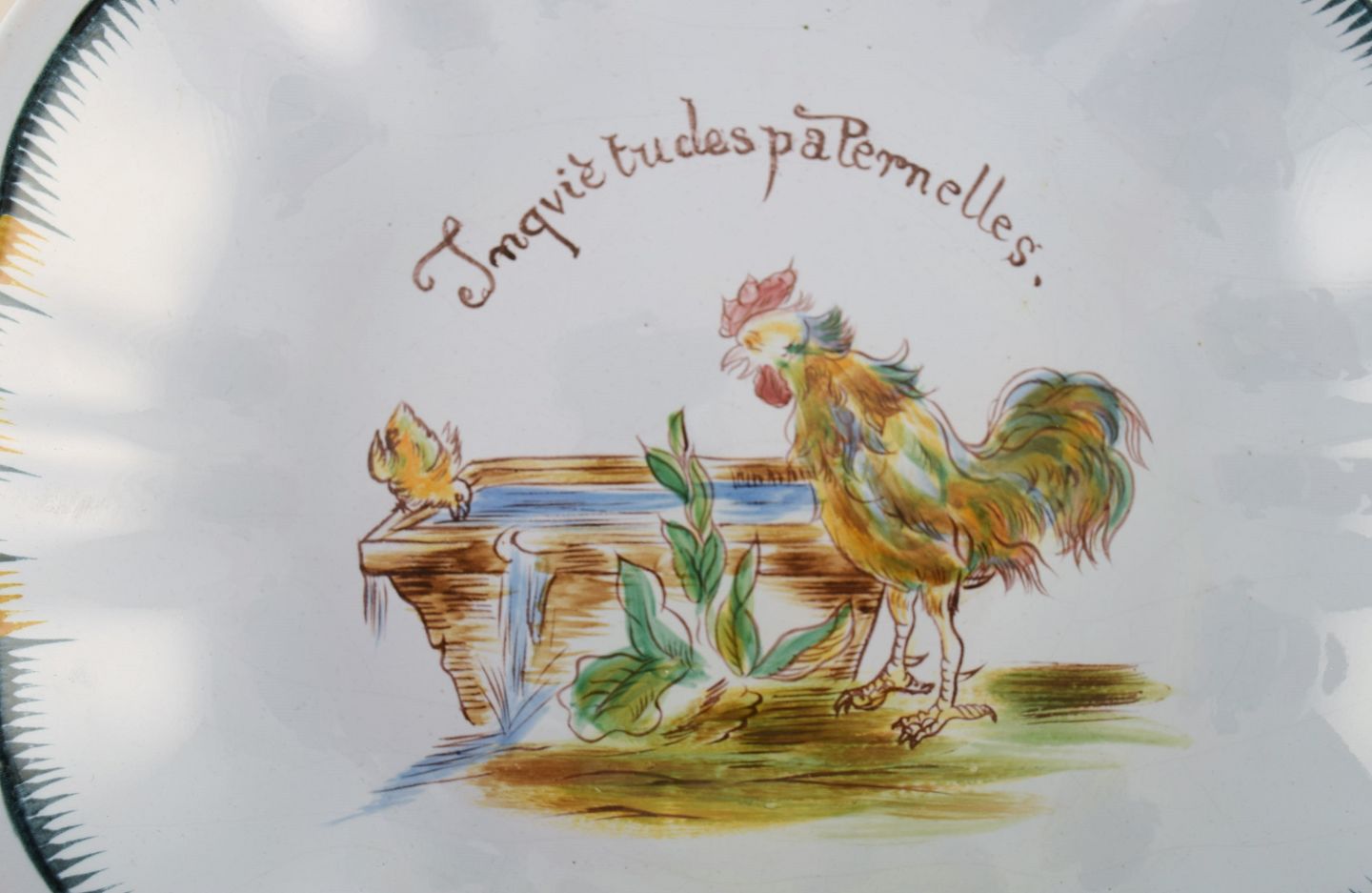 Emile Gallé for St. Clement, Nancy. Antik opsats i håndmalet fajance med motiv af hane. 1870/80'erne.