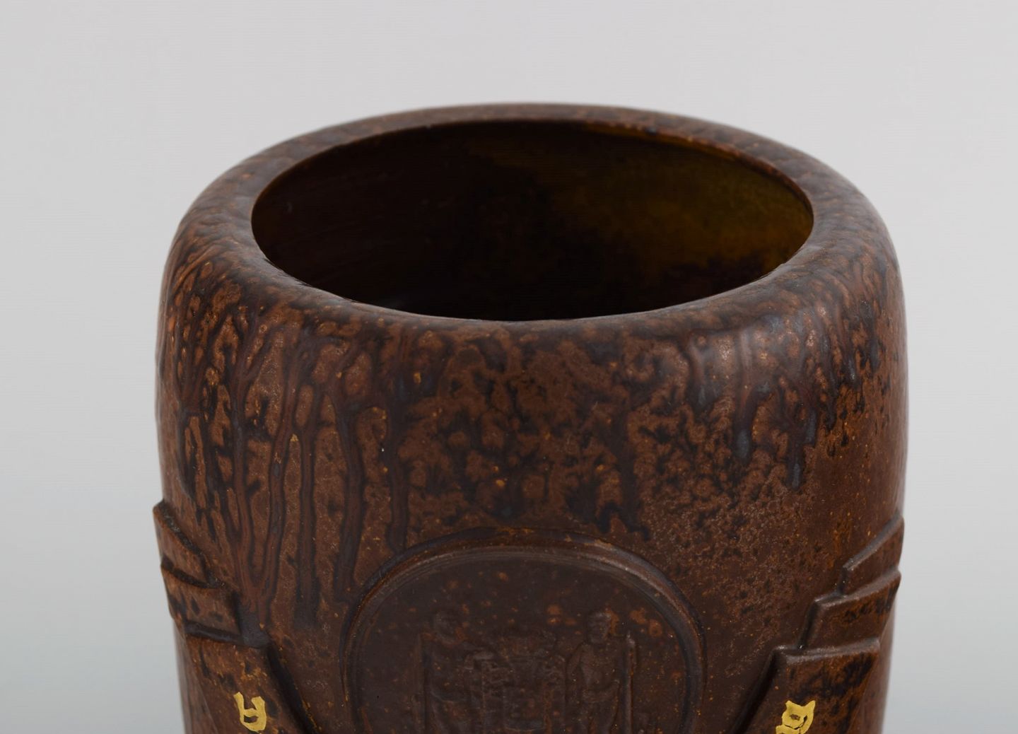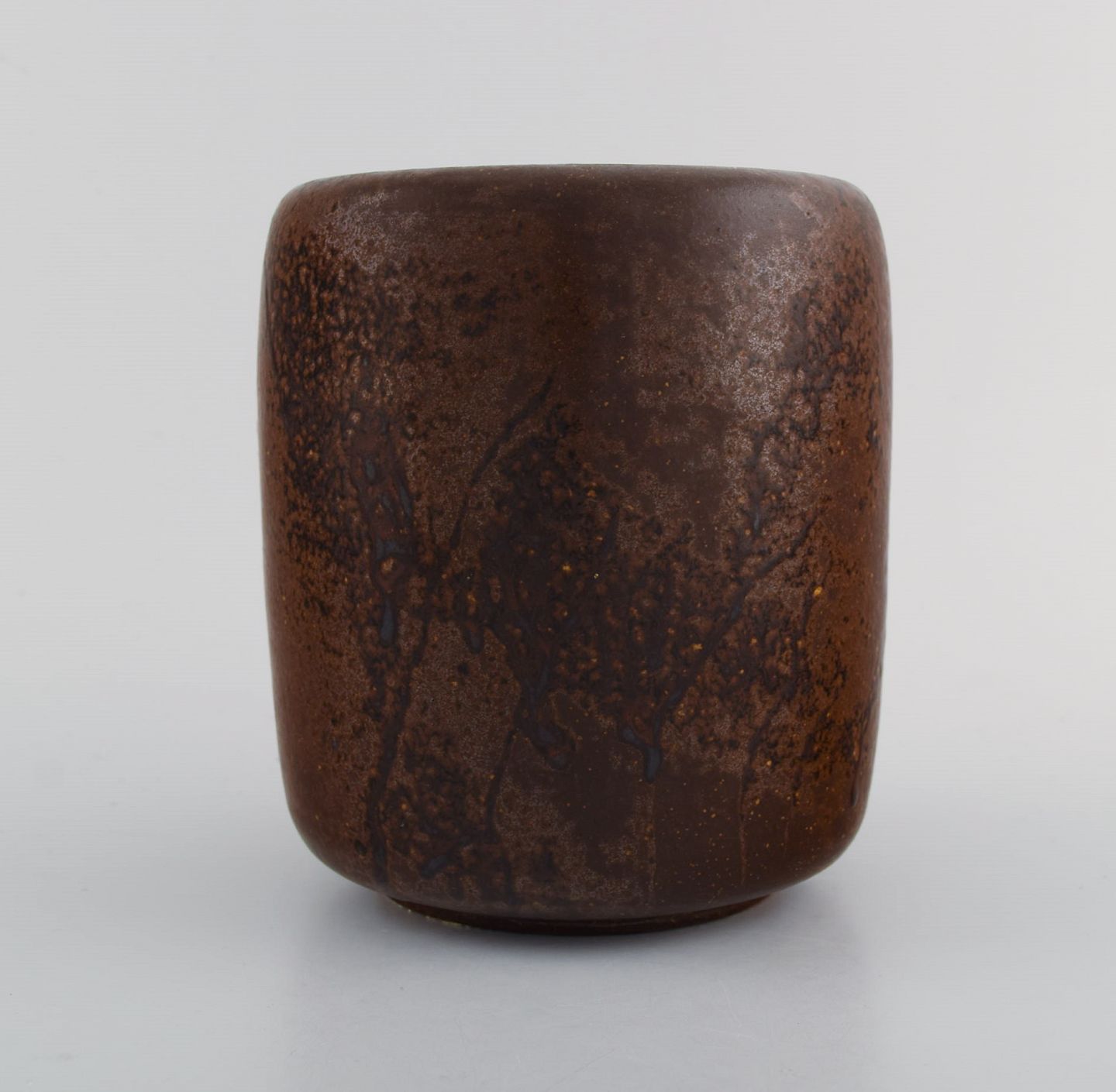 Arne Bang, Danmark. Krukke i glaseret keramik. Smuk glasur i brune nuancer. Midt 1900-tallet.