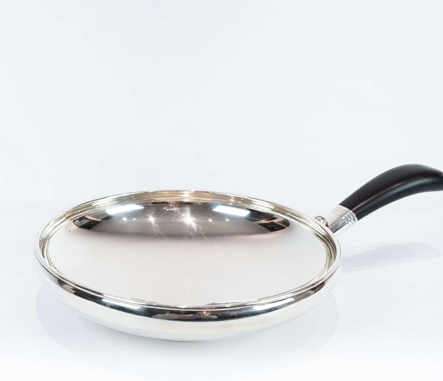 Skål på fod af tretårnet sølv og med håndtag af ibenholt.