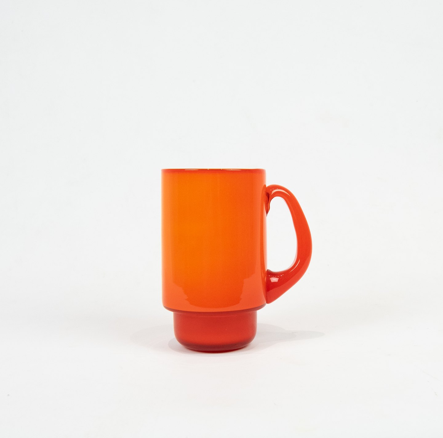 Red glass mug with white opaline glass on the inside from the Palet series by Michael Bang for Holmegaard.