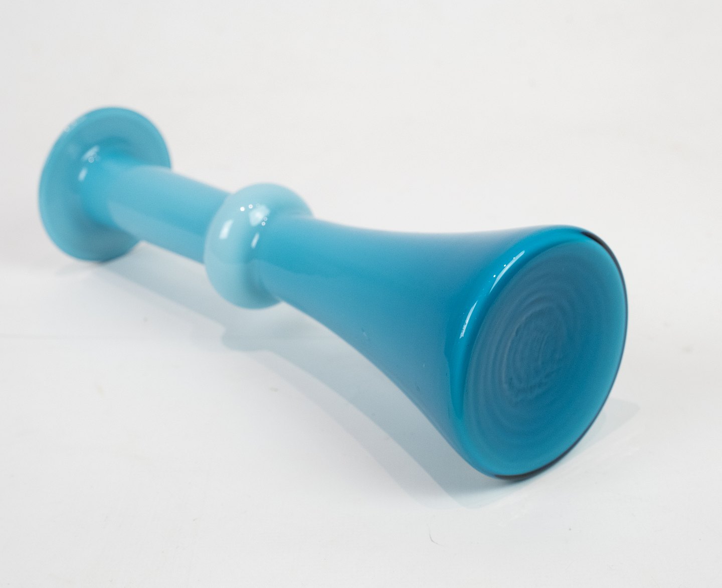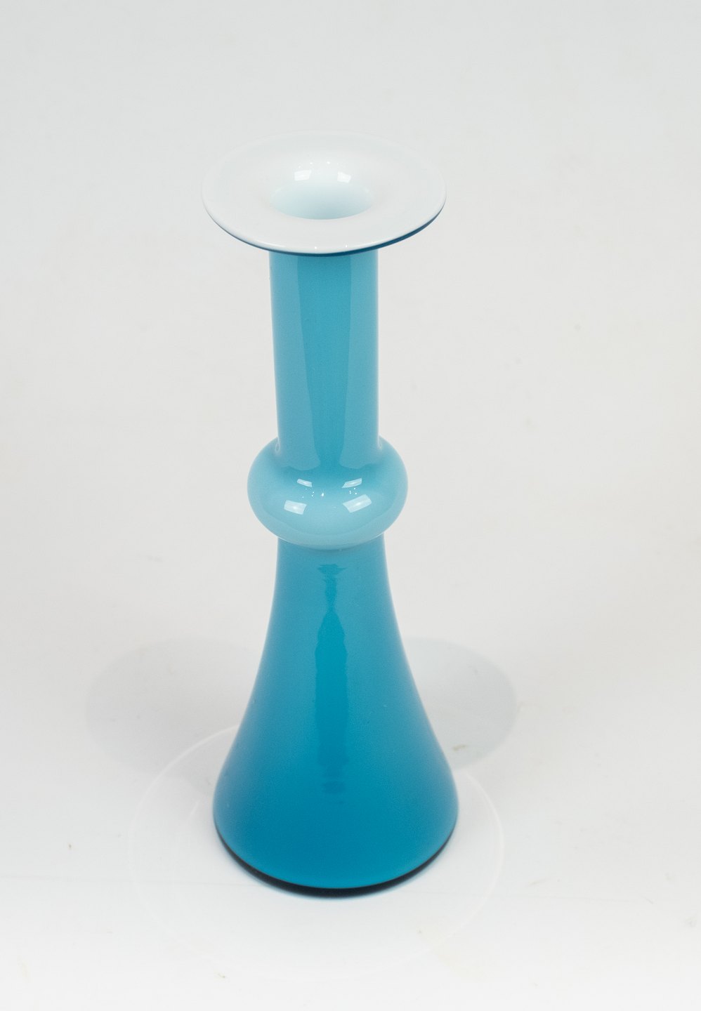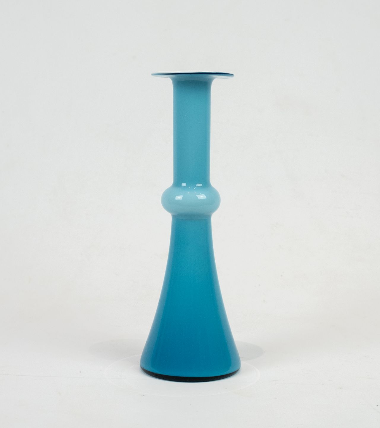 Blus glass vase with White opal glass on the insidefrom the series "Carnaby". The glass vase was designed by Christer Holmgren c. 1960 and manufactured by Holmegaard.