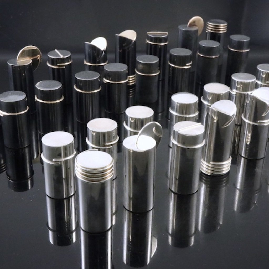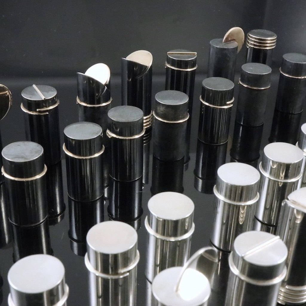 Sorte brikker i oxideret sølv med detaljer i 18K guld
